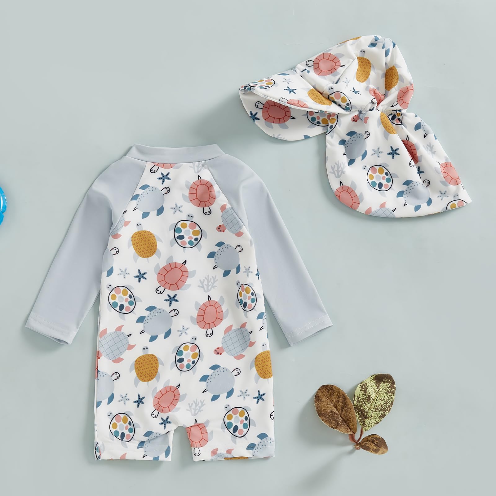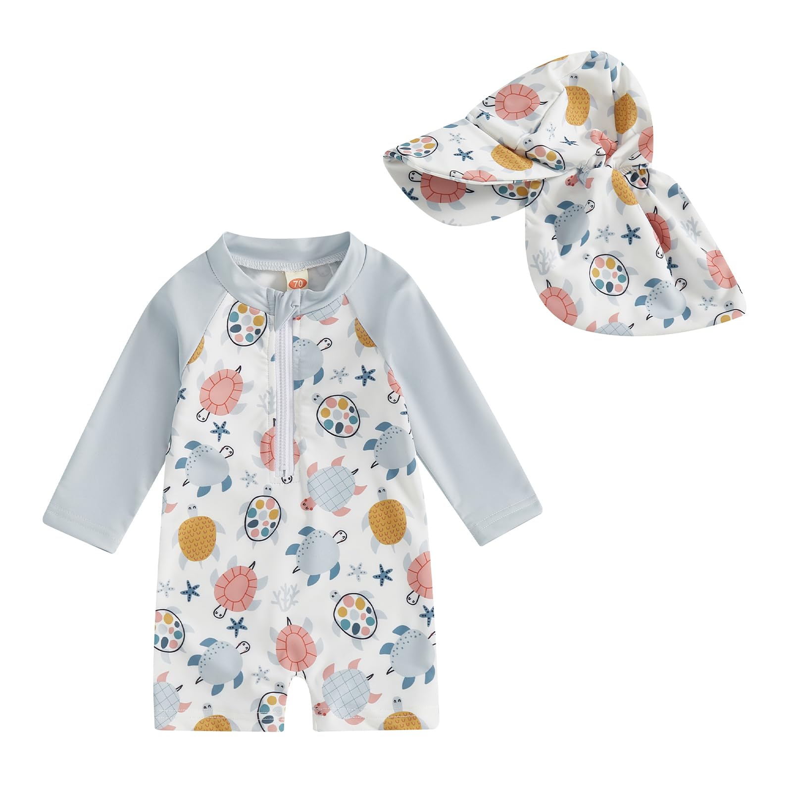 Design: Toddler bathing suit boy, infant long sleeve swimsuit boy, round neck, back/front zipper closure for easy on and off, newborn swimsuit boy, dinosaur/marine animal print, super cute and lovely, your little boy will stand out in the crowd