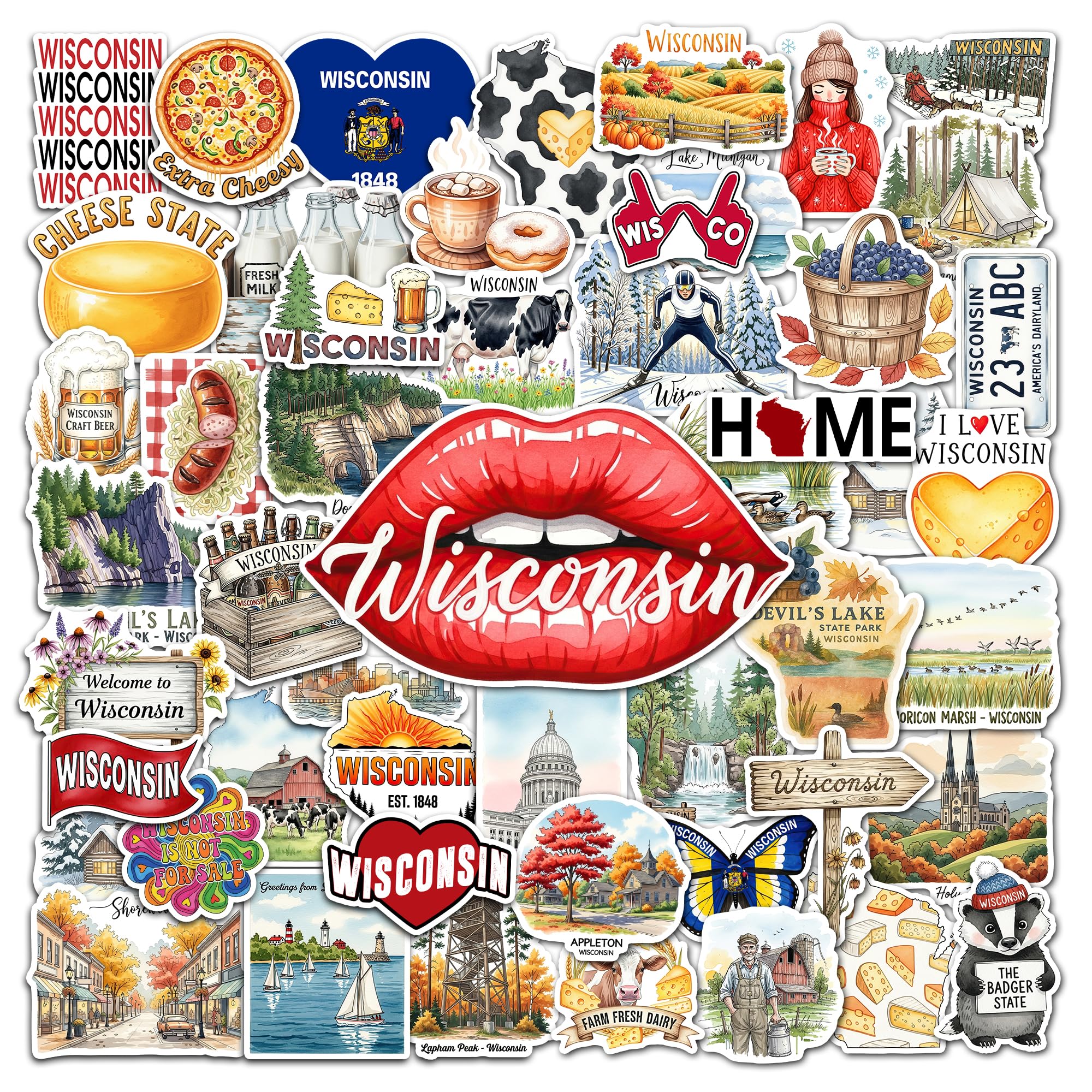 STICKER SHEETS - Wisconsin sticker pack contains several sheets. Sticker sheets are less likely to get damaged or bent compared to loose, cut-out stickers.