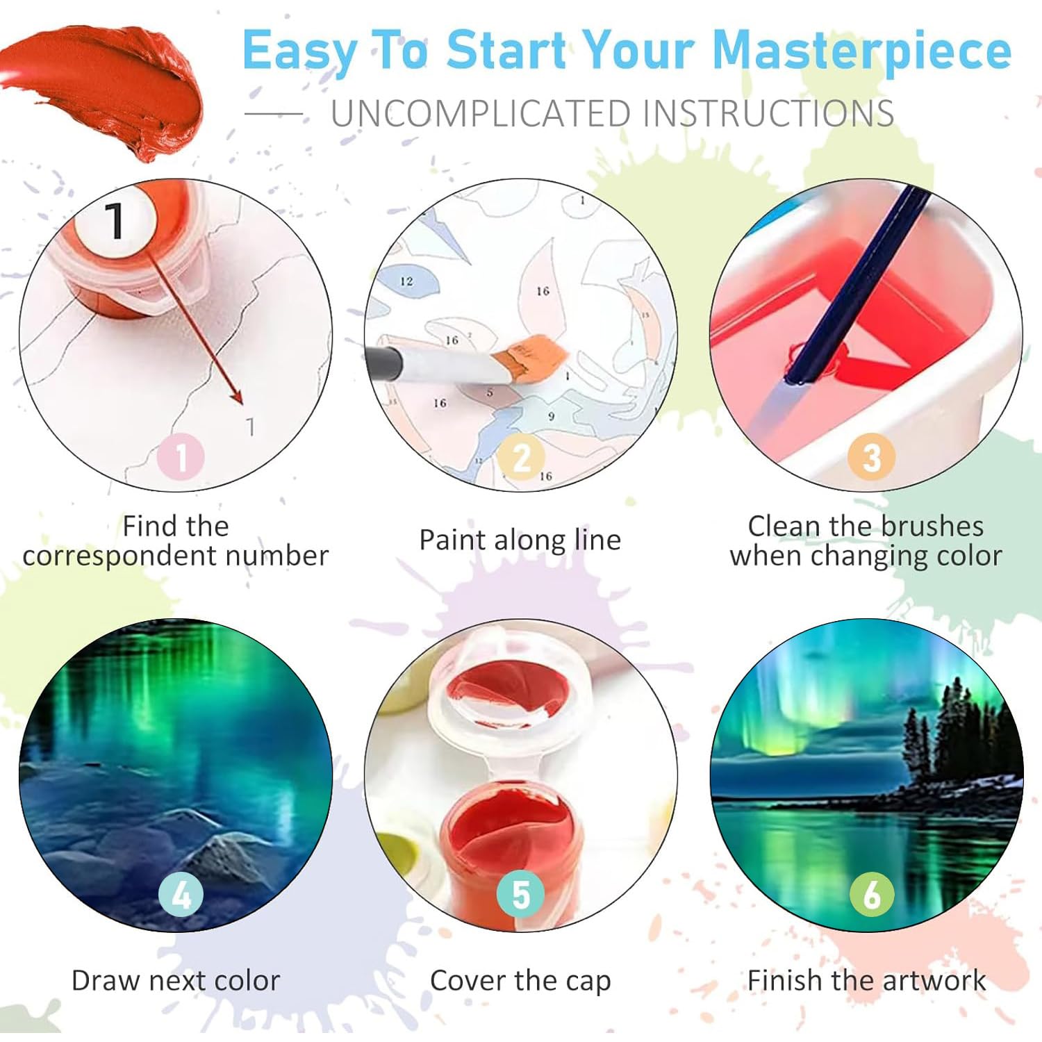 Excellent After-Sales - Our DIY design paint by numbers kit for adults provide excellent after-sales service. If the product has any quality problems, we will be responsible for it. We are happy to answer your questions. Our goal is to let customers experience 100% of the fun of watercolor paint by numbers
