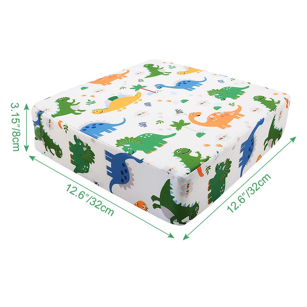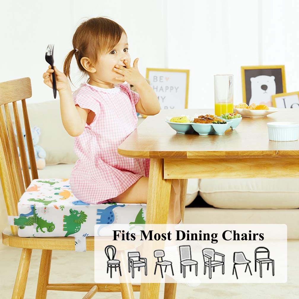 Dimensions: 12.6"L x 3.1"H x 12.6"W, fit most of dining chairs. It can be used for toddler children old who can sit unaided at a table to enjoy the meal with family together. Also can used for children writing, drawing and play toys.