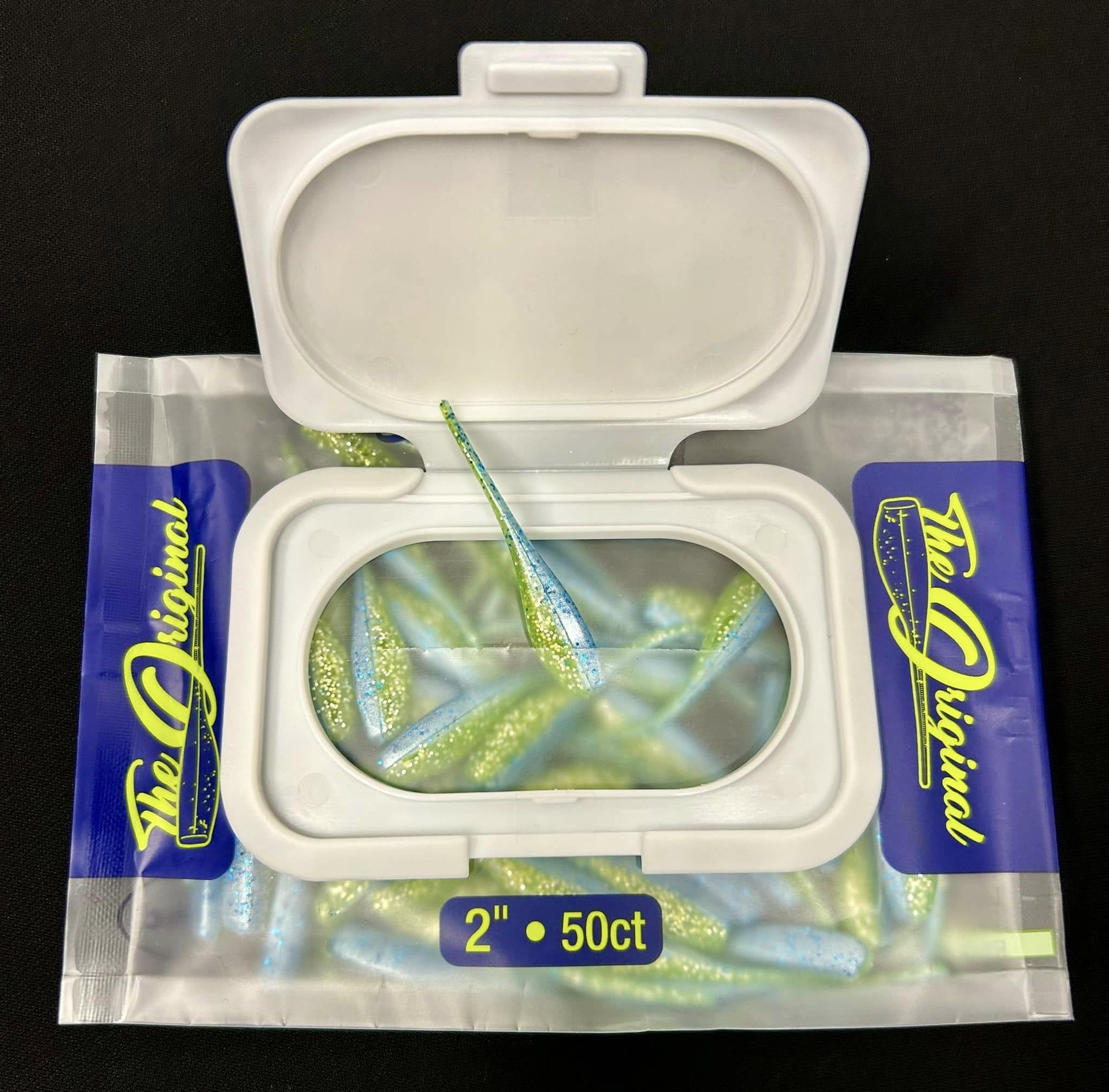 Baby Shad 50-count bags can be stored either flat or vertically to fit most tackle storage options, from tackle boxes to boat compartments.