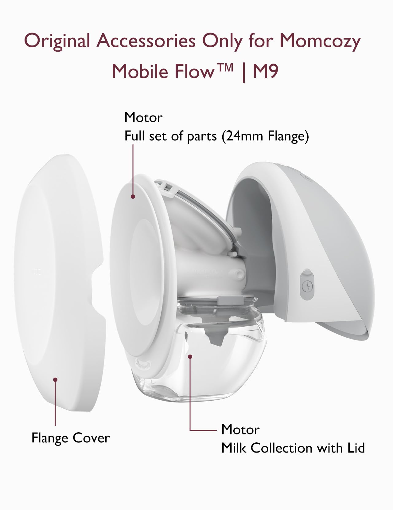 Original Parts: Works With Your Upgraded M9 Pump. The accessories are compatible well with your Momcozy Upgraded Mobile Flow | M9. A set is enough to meet the replacement needs of Momcozy Upgraded Mobile Flow parts. Momcozy Original Parts FSA/HSA is eligible.