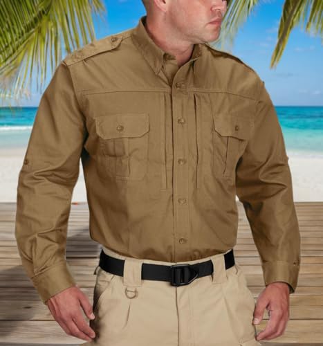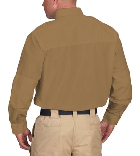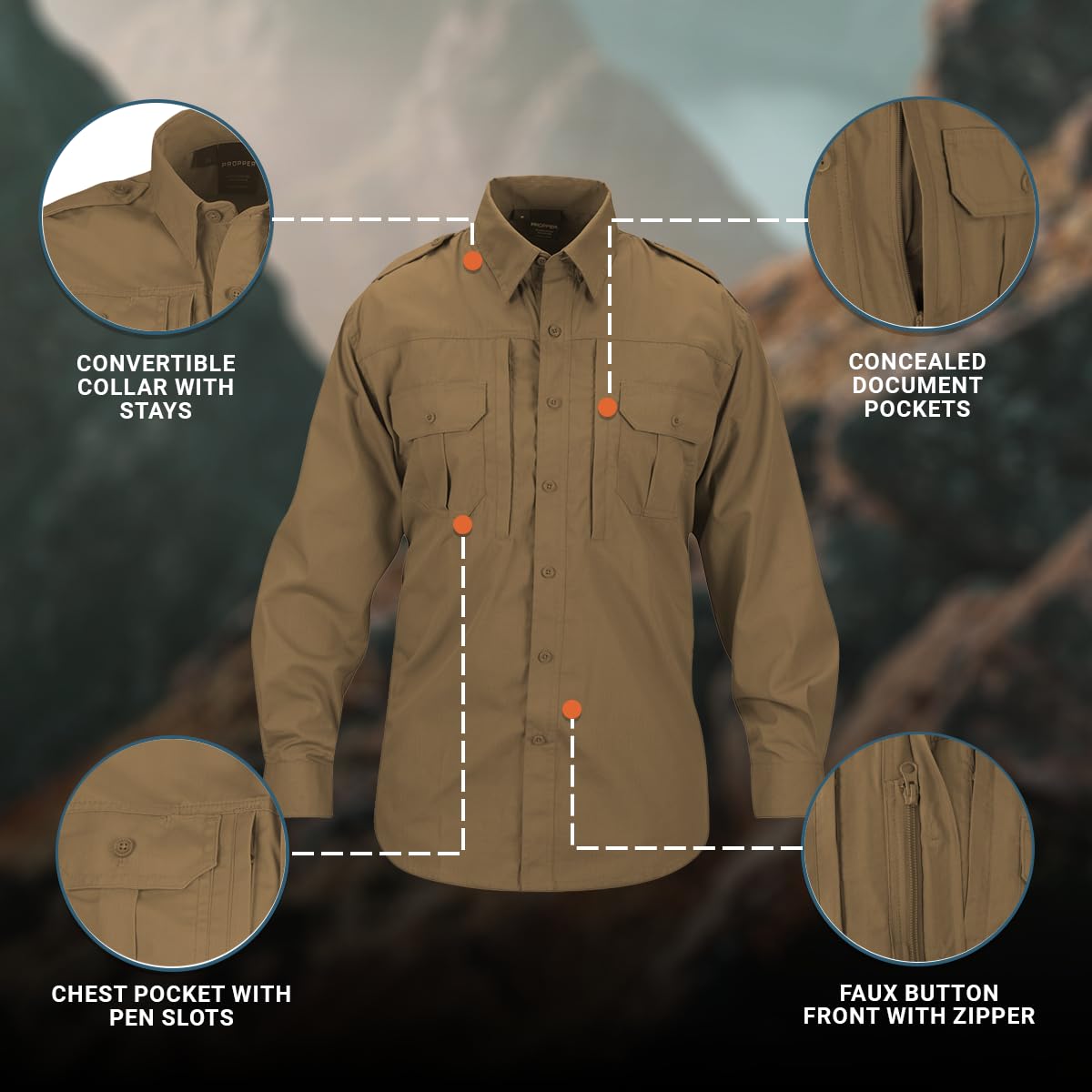 SMART DESIGN: The Propper Long Sleeve Tactical Shirt is made with 65% polyester 35% cotton lightweight ripstop and has a clever concealed zipper front closure hidden behind a traditional button placket façade