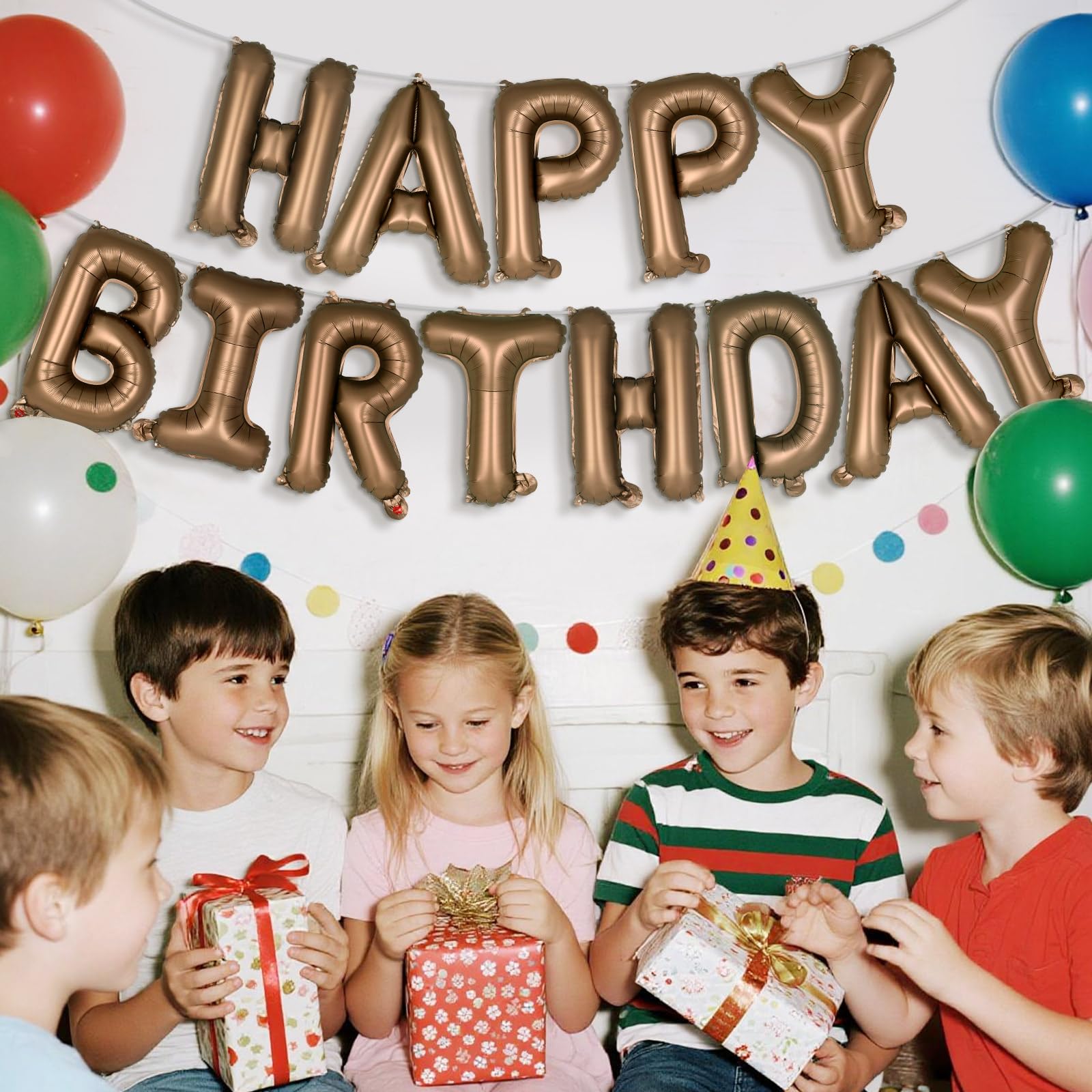 Package Includes: 13 pcs Foil Happy Birthday Letter Balloons 1 x Ribbon 1 x Plastic Straw Unique Balloon Arch Kits. Celebrate the special moments in the life with the happy birthday balloon banner decoration!