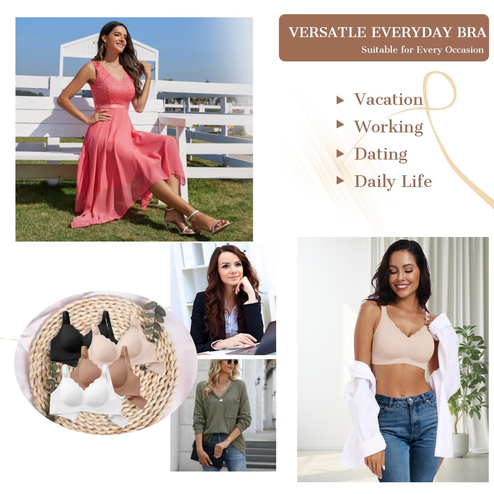 Seamless Bras for Everyday Wear - These seamless bras ensure invisibility under clothing, giving you the freedom to mix and match with different styles. They can serve as everyday bras, sleepwear, lounge bras, minimizer bras, and are flattering to pair with t-shirts, blouses, suits, cardigans, or sweaters. A sports bra ideal for light activities like yoga, dance, or walking.