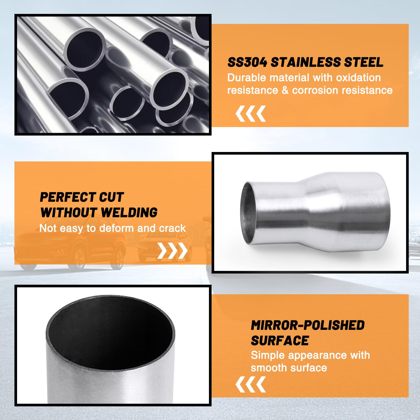 ➤ DIY Exhaust Pipe: The exhaust reducer eliminates the gap and achieves a nice transition from 3" to 2",widely used for exhaust system. Suitable for any exhaust pipe, exhaust tip, resonator, muffler, connecting components of different sizes on both sides