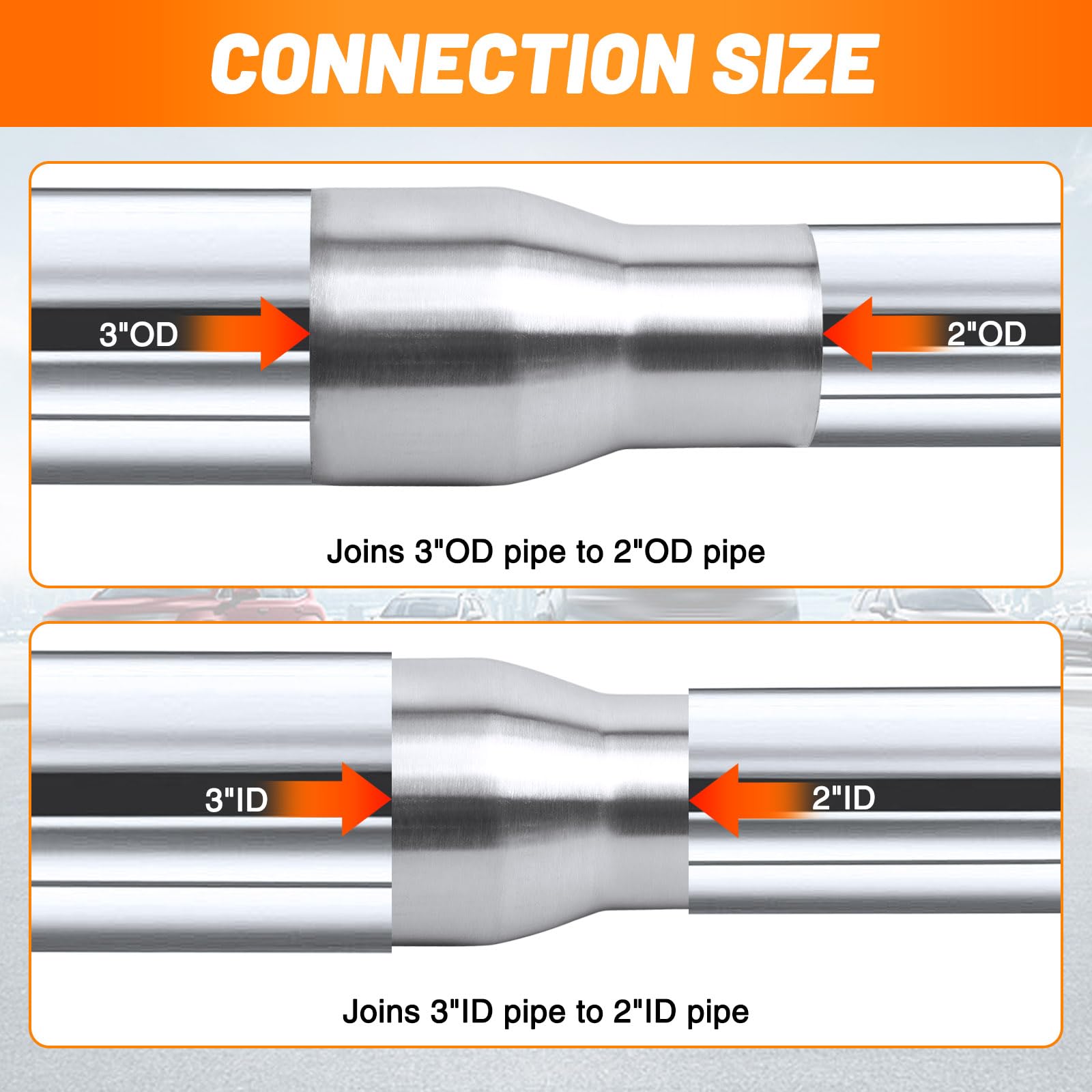 ➤ Package: 2Pcs stainless steel 2 to 3 Inch exhaust adapter. Universal used for all exhaust, turbo, intercooler, intake piping connection