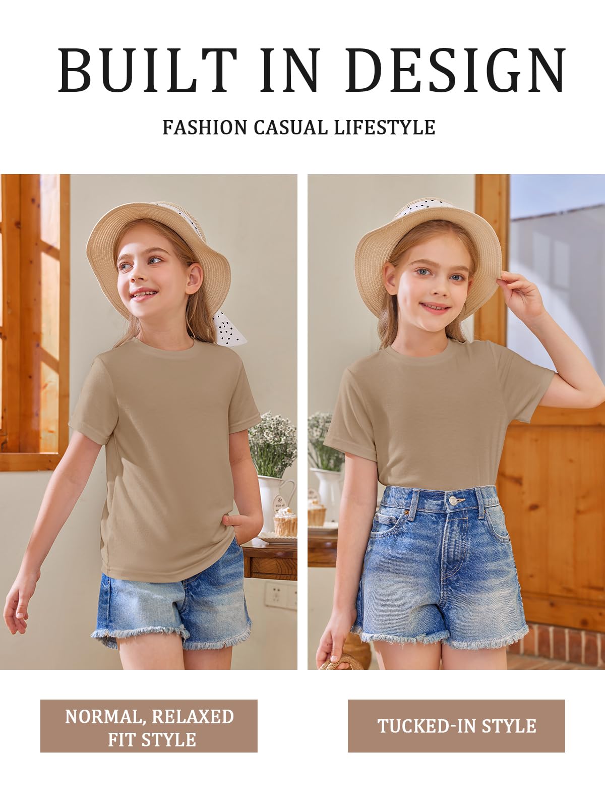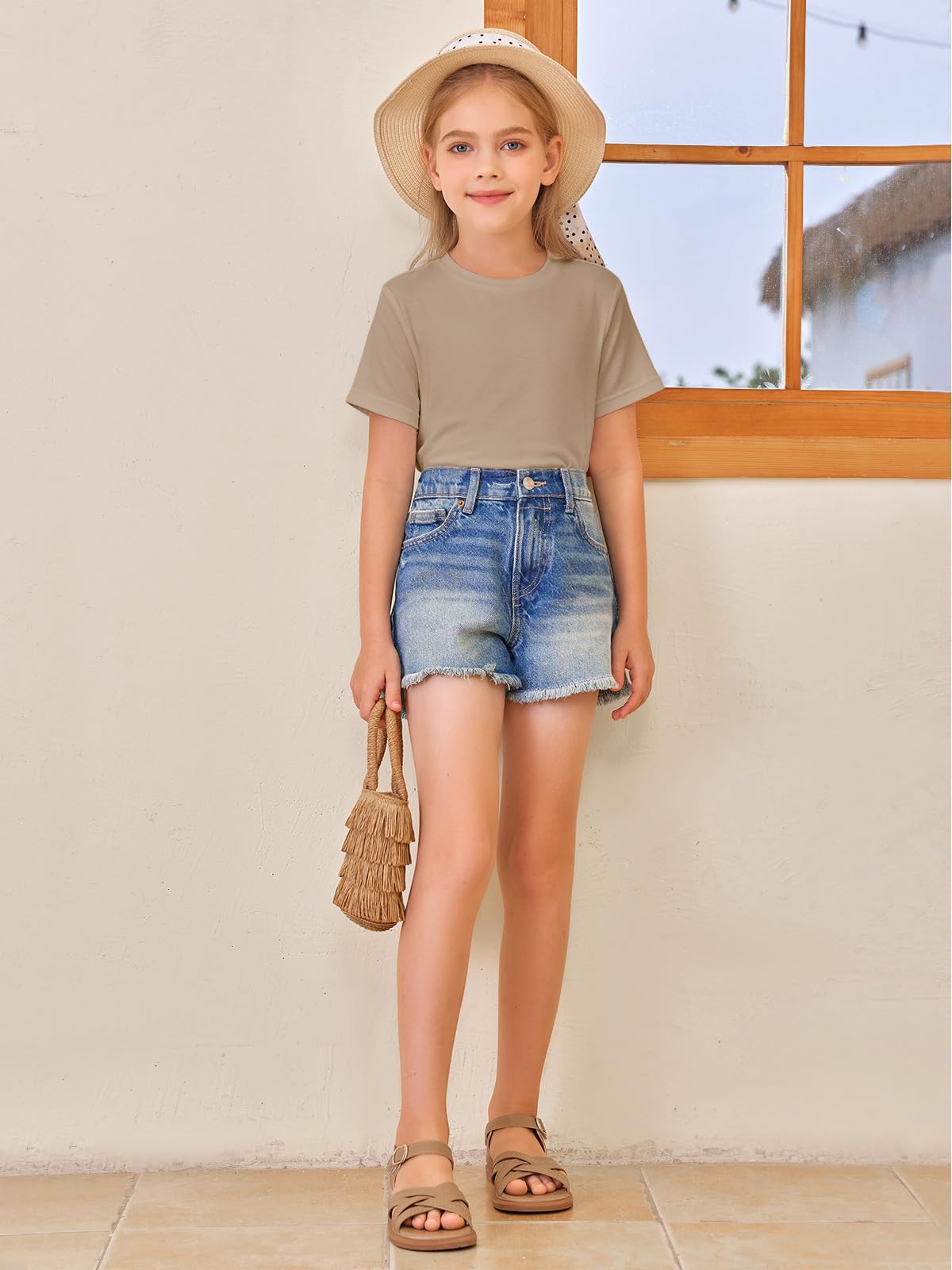 Design: Girls summer t-shirt, casual solid color tee tops, classic round neck and regular length, ,it's a good choice for slim kids.The loose fit provides a comfortable fit for ease of wear and movement. Don't worry about showing your belly when you play
