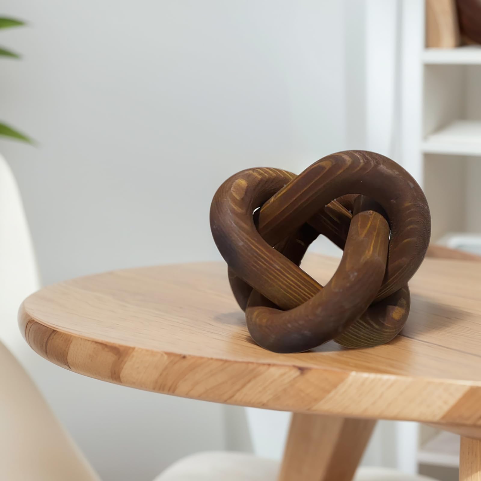 【Good Size for Any Table】: Each of the three wood chain links measure 5.75 x 5.5x 4.5 inches. A fantastic size as a stand-alone piece on smaller tables, this decorative wood knot can also be placed with other items to create centerpieces for your dining room table.