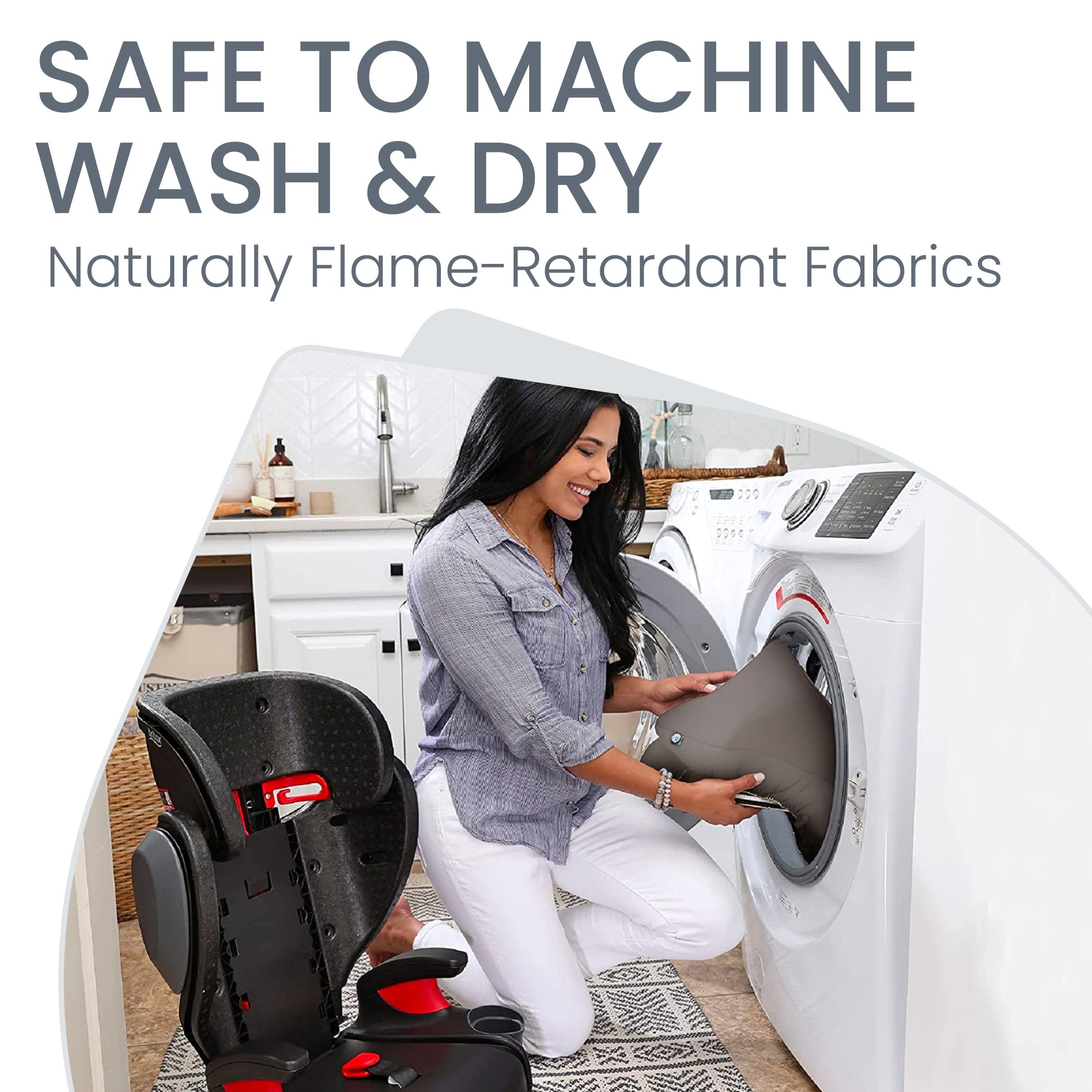 Kids grow fast, so they need a car seat that can keep up! With a higher weight and height capacity than most other brands, Highpoint® helps your child ride safely in a booster longer. Easily converts to a backless booster. Don’t stress the juice box spills! Safe to machine wash & dry, the removable car seat cover stays looking like-new, mile after mile. No more hand washing or waiting for it to air-dry. Just quick and easy cleanup, so you can keep moving. Mindfully-made from top to bottom, this seat has a naturally flame-retardant cover with no added FR chemicals. The sleek new design comes in plenty of colors for kiddos to choose from. Fits three across to give you extra space when piling in for family trips or carpooling to soccer practice. The lightweight design means it’s easy to move from car to car without slowing down your day.