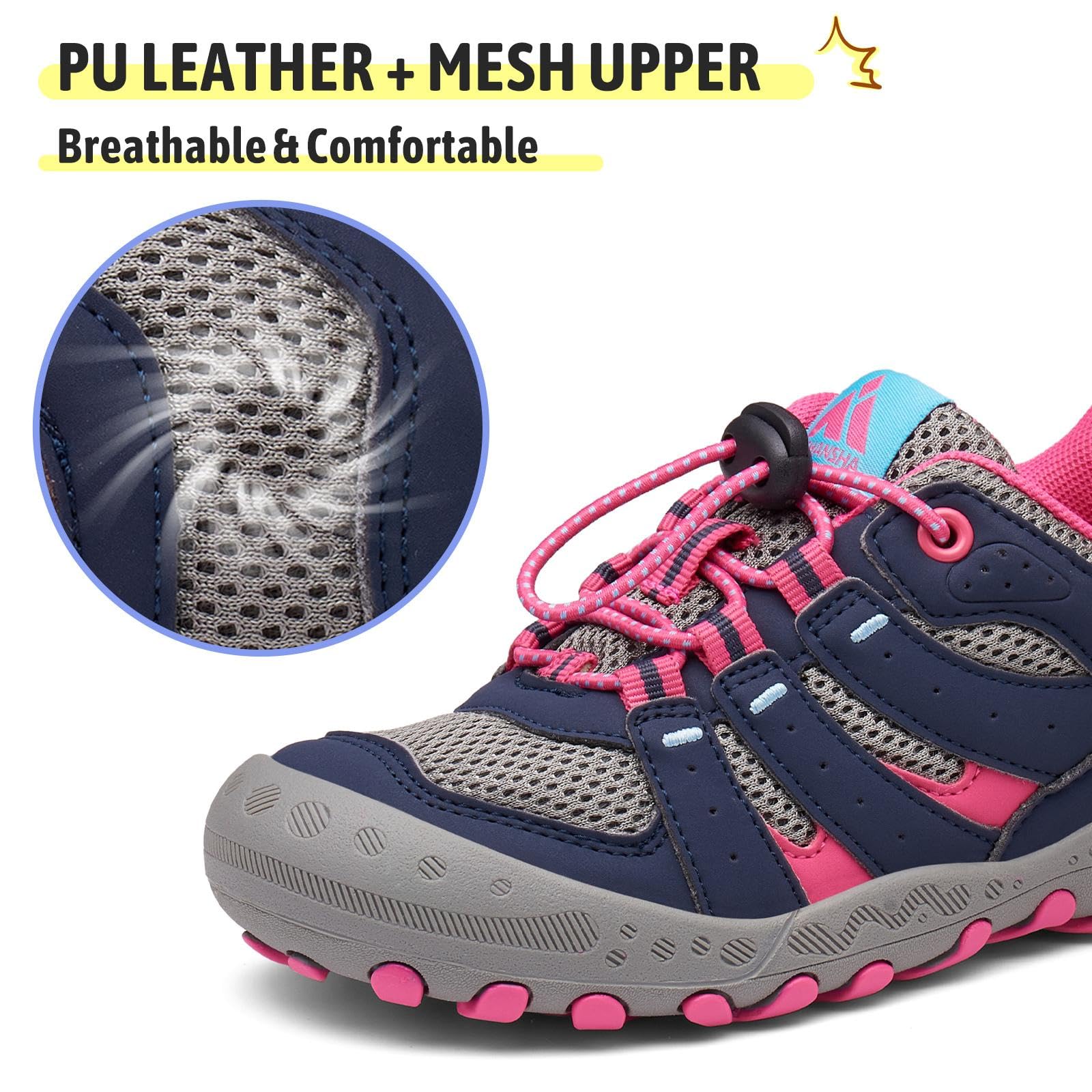 Versatile Use: Mishansha hiking shoes for kids girls boys, perfect for kinds of outdoor activities, including daily casual wear, hiking trekking, trail running,camping, walking, school, playing, and exploring the outdoors, The kids trekking shoes are with robust construction and stylish design make them a reliable choice for kids' adventurous and active lifestyle