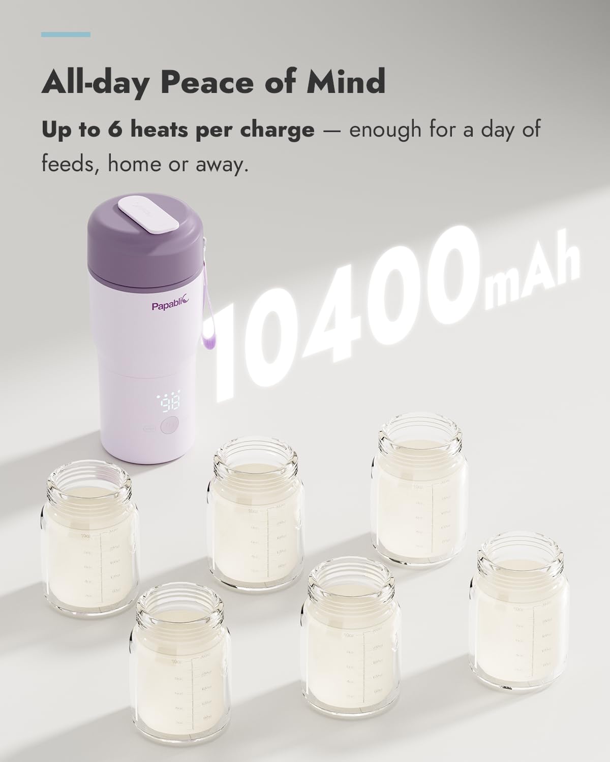 All-day Battery & Fast Charging: Fully charged in 1.5 hours, the battery provides enough heating cycles for a full day of feeding (5 portions of 4oz cold milk). Wireless design lets parents feed anytime, anywhere without worrying about outlets.