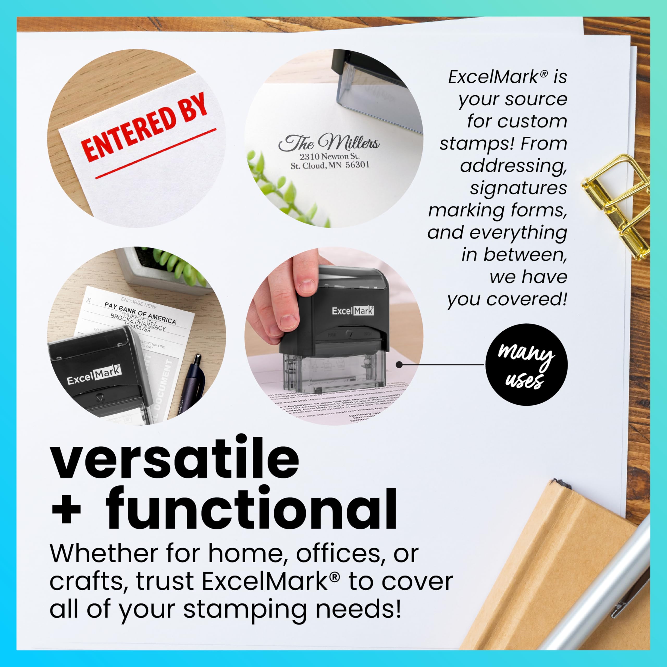 CUSTOM STAMP: Personalize up to 3 lines of text within a 0.5” x 1.5” impression area. Whether it’s your return address, contact details, or handy phrases, tailor your stamp to organize documents effortlessly.