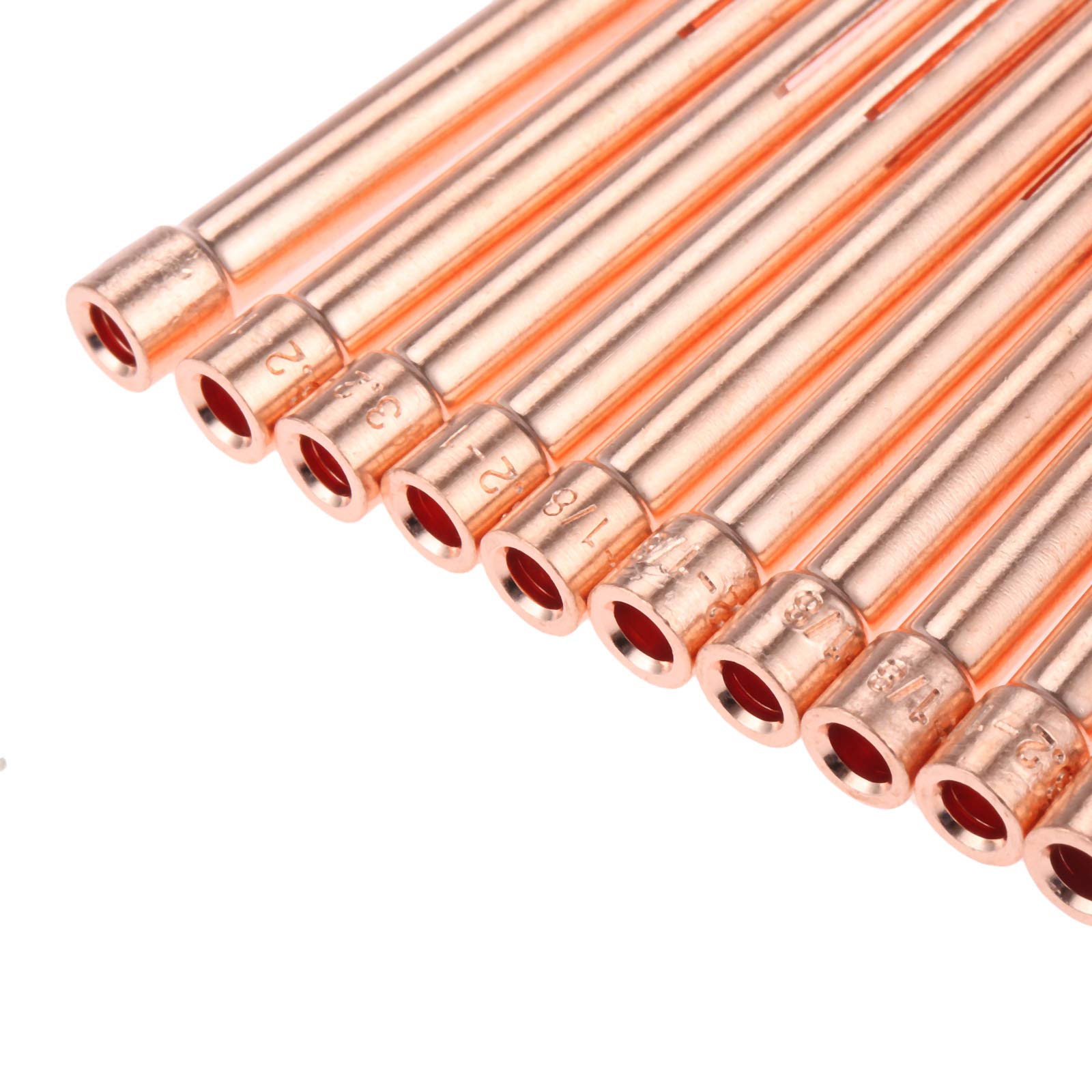 Compatibility:This Copper TIG Collet compatible with WP17&26 series air cooled torches and 18 series water cooled torches,including the Lincoln PTA-17,PTA-18 and PTA-26 torches,Miller Diamondback DB17,DB18 and DB 26 torches,as well as the Weldcraft WP-17,WP-18 and WP-26 torches