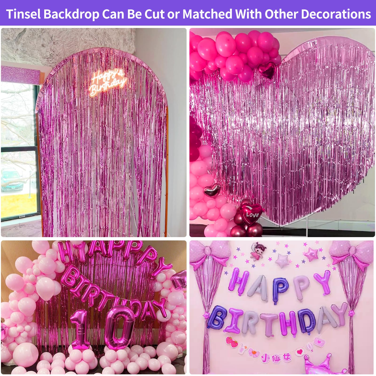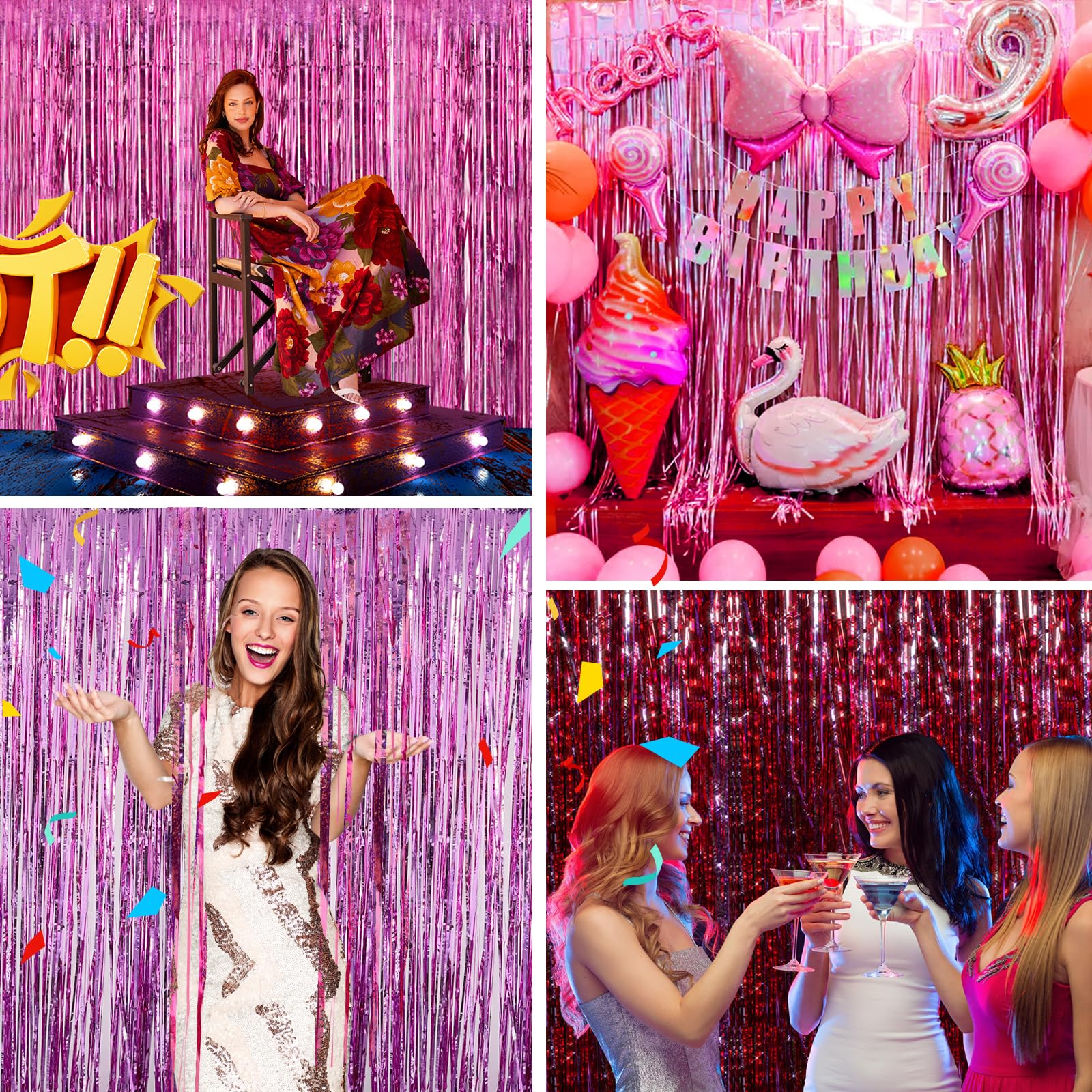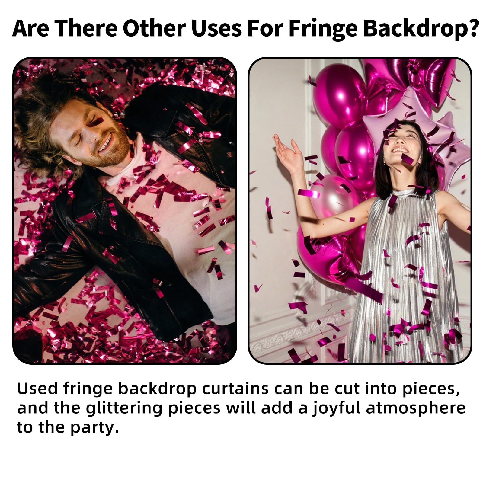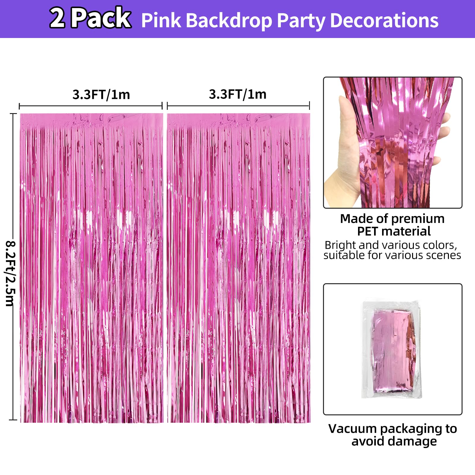 Pink Birthday Decorations: Package includes two fringe backdrops and are vacuum sealed to protect backdrop from breaking during shipping. One pink backdrop measures 3.3x8.2 ft, making it easy to add some fun to party decorations, perfect for all occasions