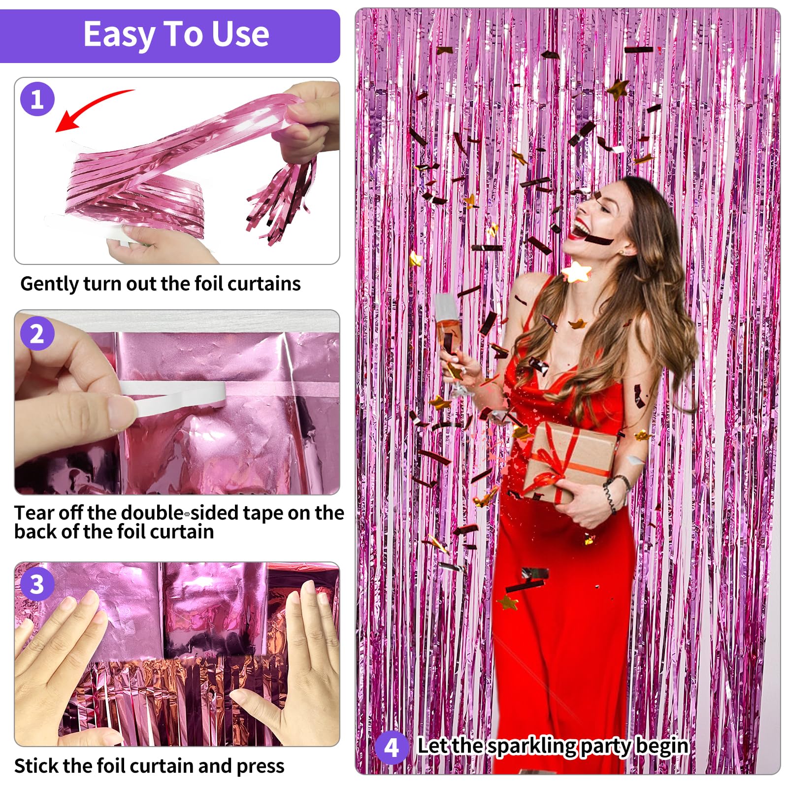 Shiny Material: Pink foil backdrop is made of PET material with laser spangle, our tinsel backdrop shines and glimmers, ensuring it catches the light perfectly. Streamer backdrops are thick, durable, and of uniform color with no stains or defects