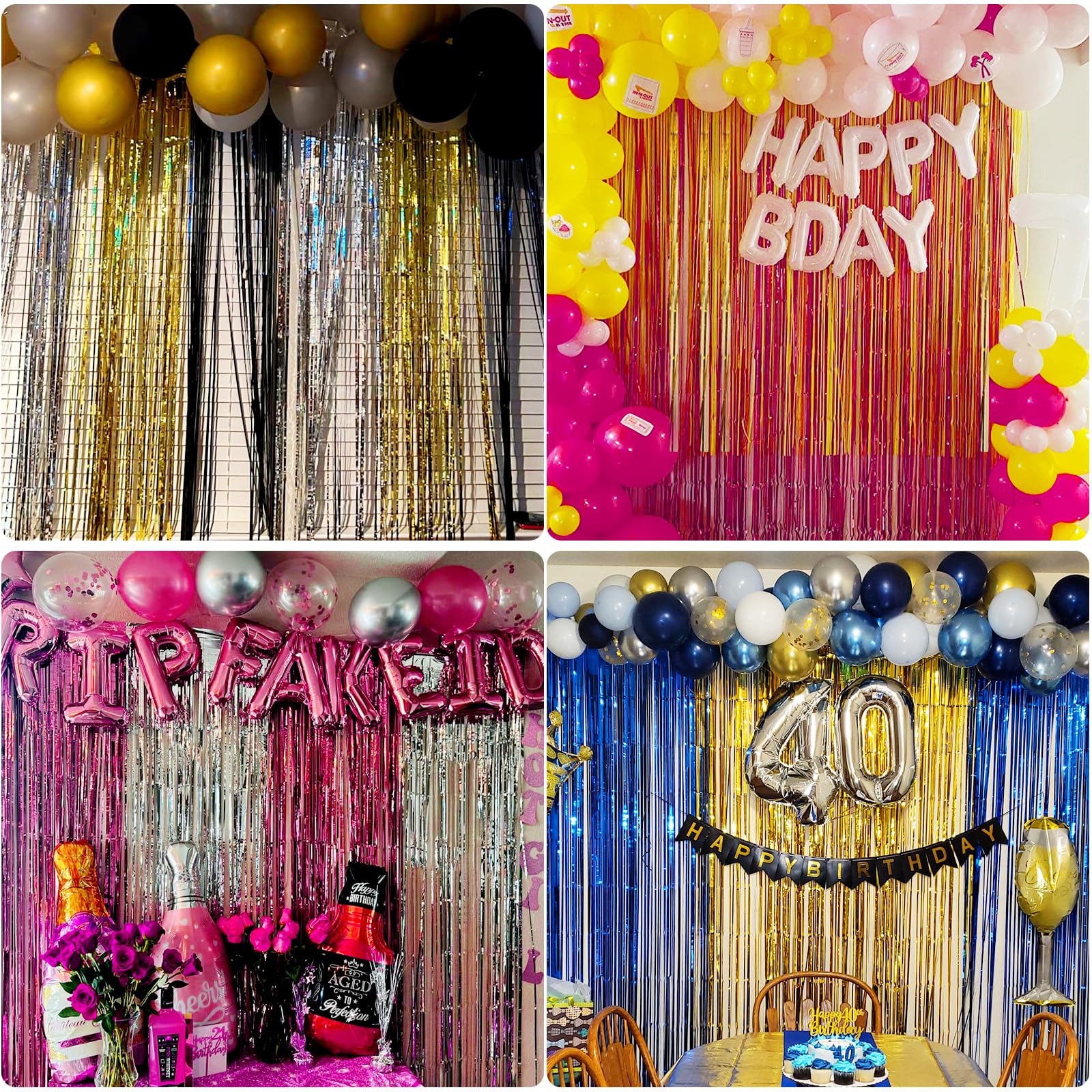 Easy to Use: Each foil fringe curtains are already prepared with double-sided tape on the back side, making it easy to stick them to a flat and clean surface, and cut them to desired length. Get a unique effect by overlapping different curtain