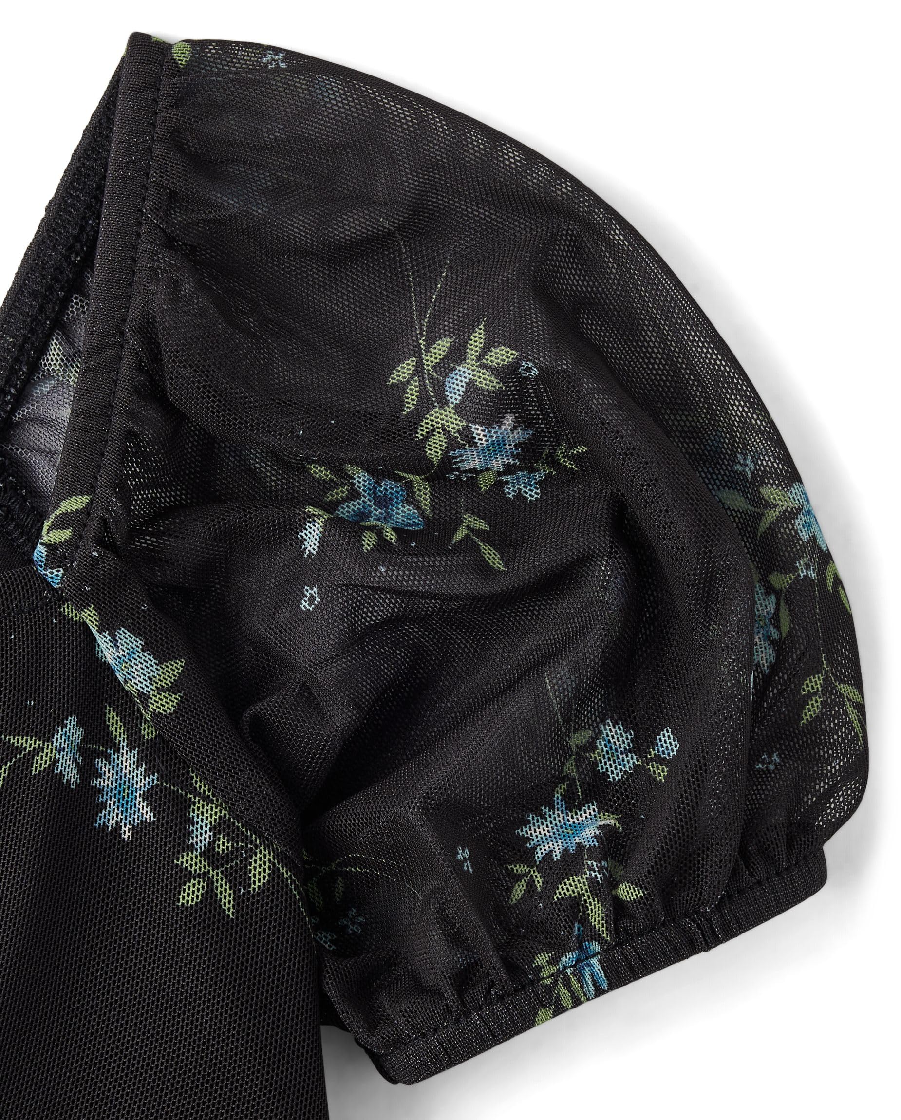 FIT & DESIGN: Elasticized square, short puff sleeves with elasticized cuffs, above-knee length