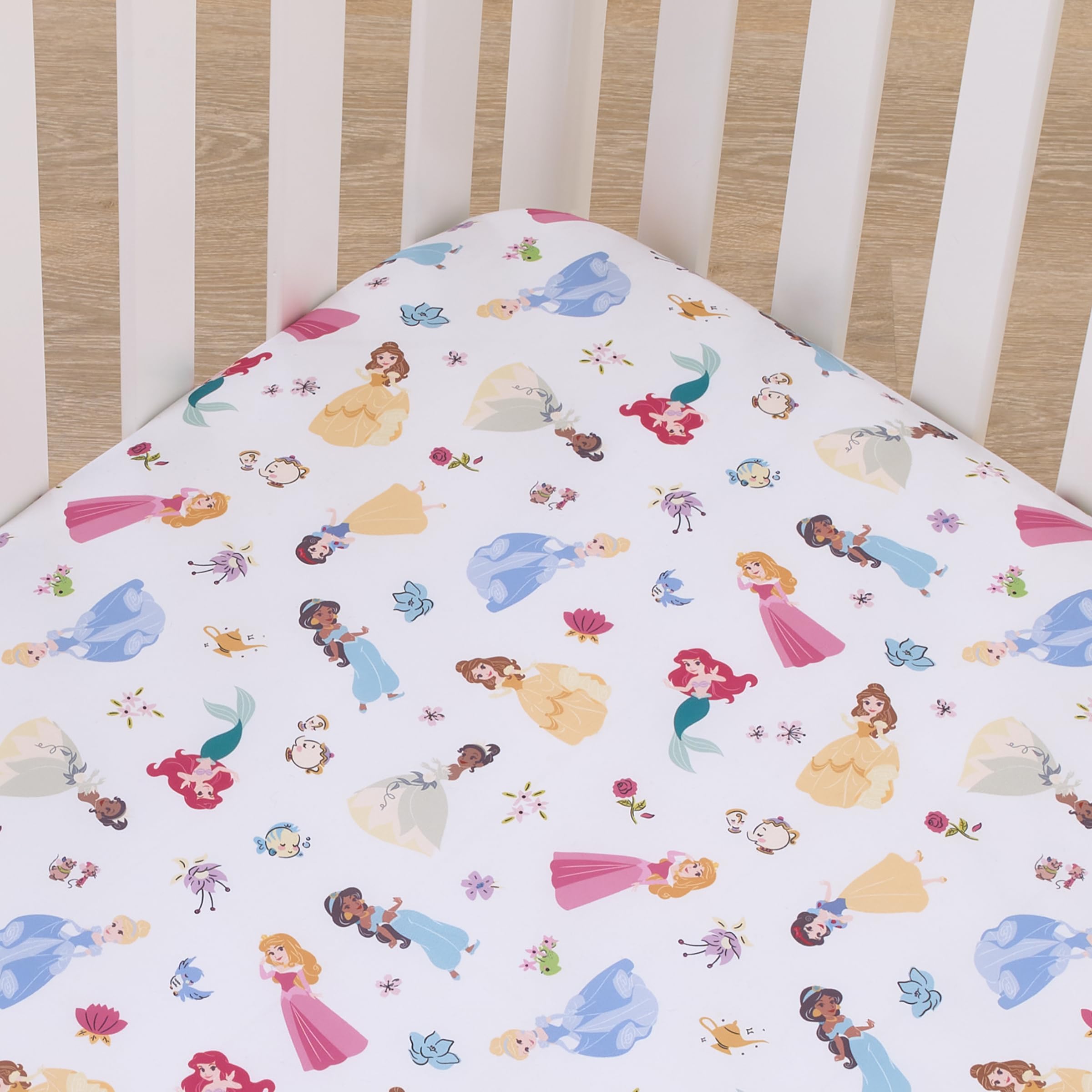 Pretty Princesses are enchanting on this adorable Disney Fitted Mini Crib Sheet!