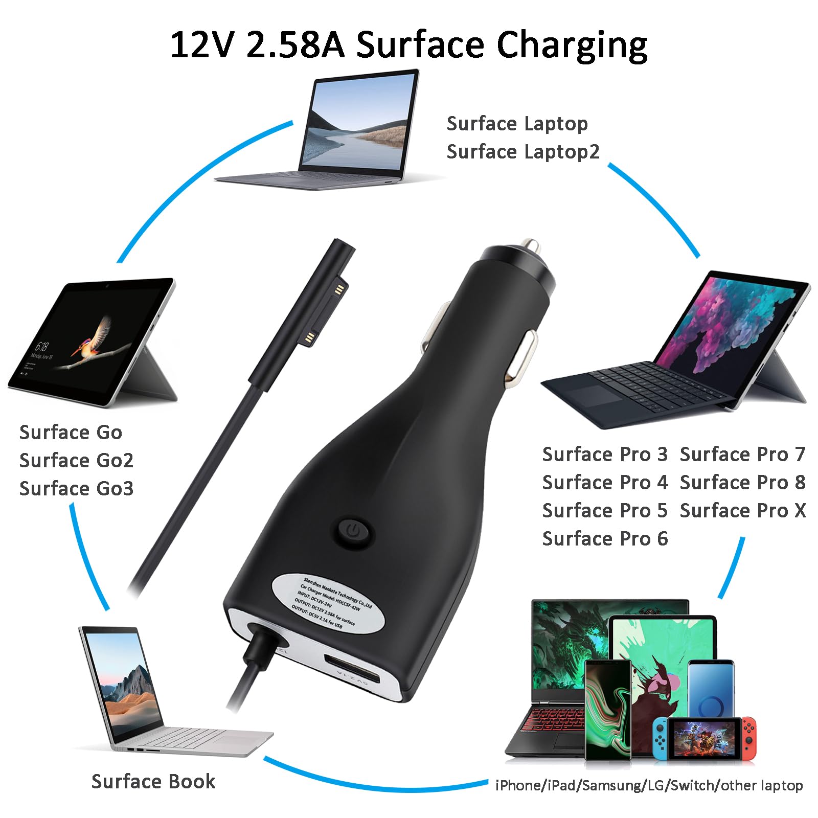 SURFACE PRO CAR CHARGER: The UL listed surface car charger power supply is designed to match your Microsoft surface Pro 3, Microsoft surface Pro 4, Microsoft surface Pro 5, Microsoft surface Pro 6, surface Laptop, Surface Book, Surface Pro (5th Gen), Microsoft Surface Pro (2017/2018), Surface Laptop 1/2 & Surface Go