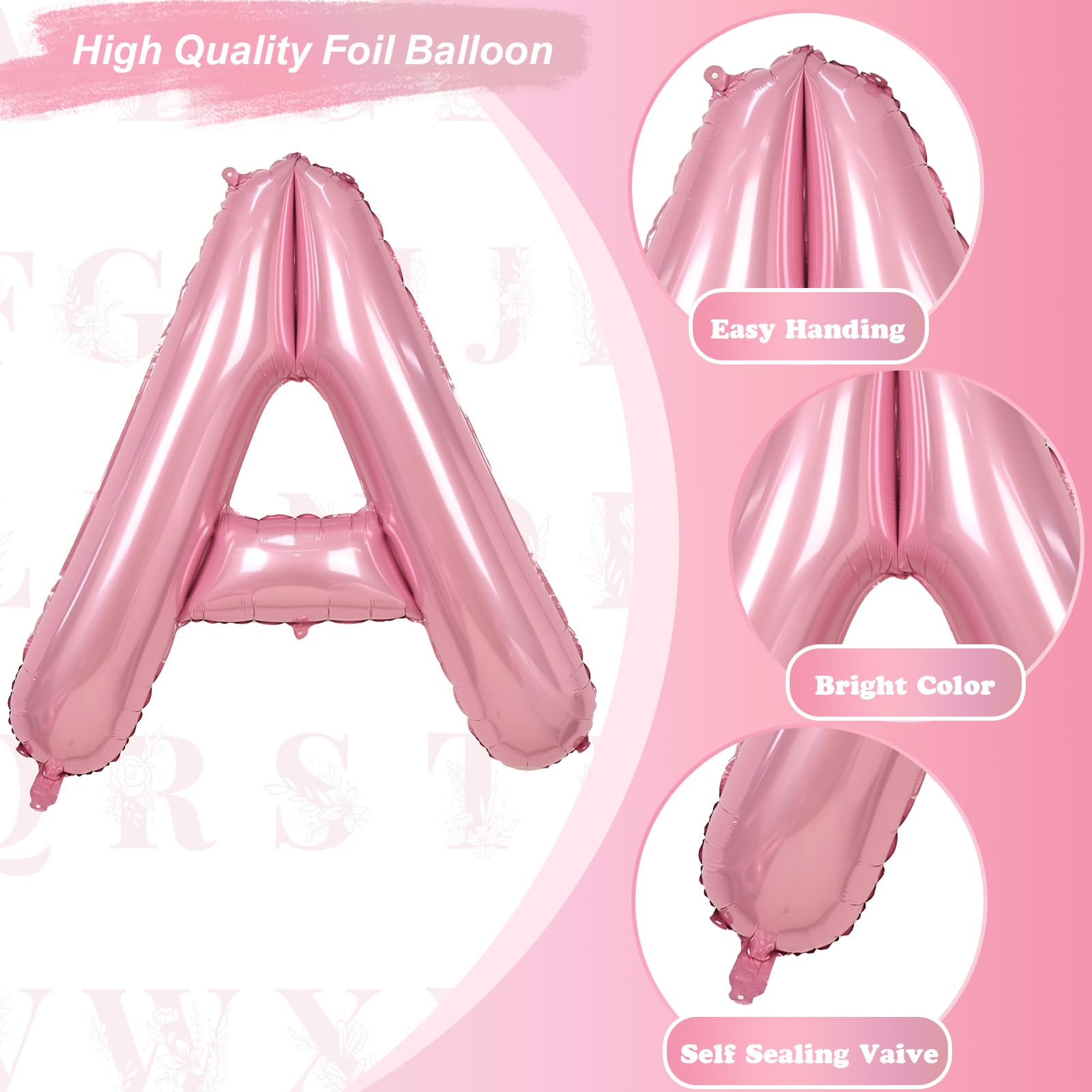 🎈 Easy to Use: The pearl pink alphabet balloon has holes at the top and bottom, so you can hang it in the air with a string. After use, a long straw can be inserted into the filling hole and gently pressed to deflate, and then folded up for the next use. The simple inflatable process of light pink letter balloon allows you to quickly complete the decoration for easy hanging or display at your perfect party.