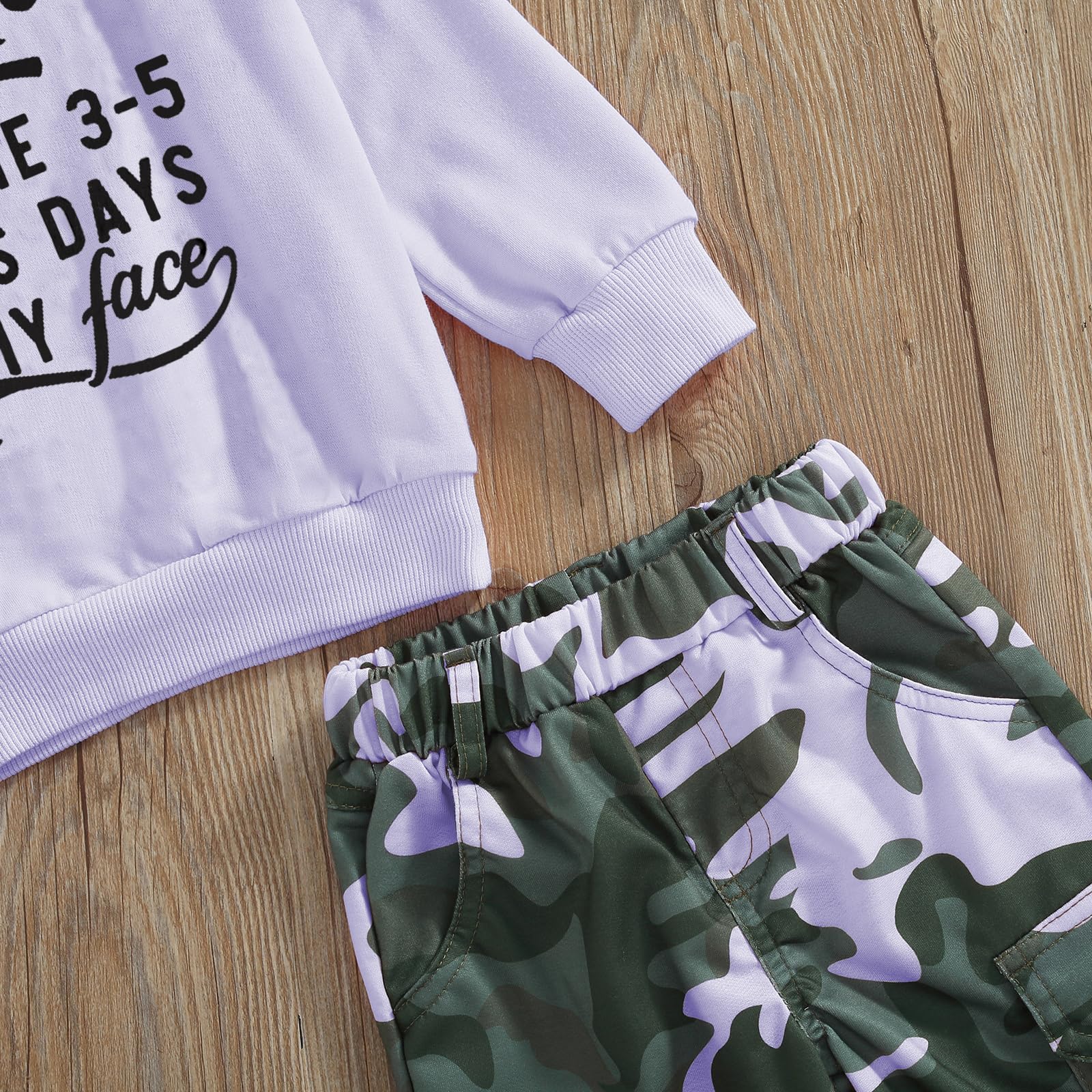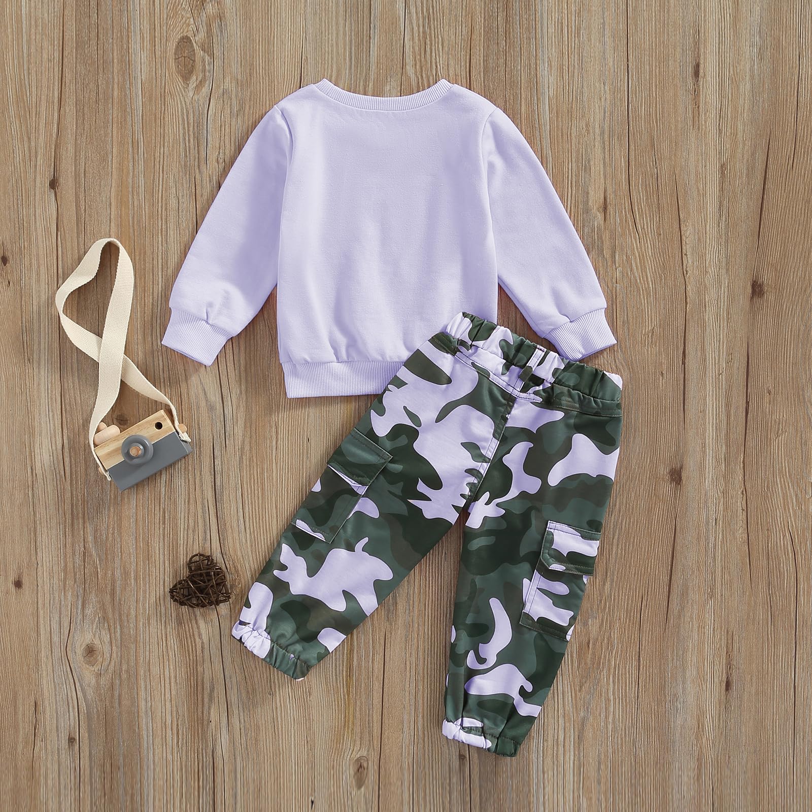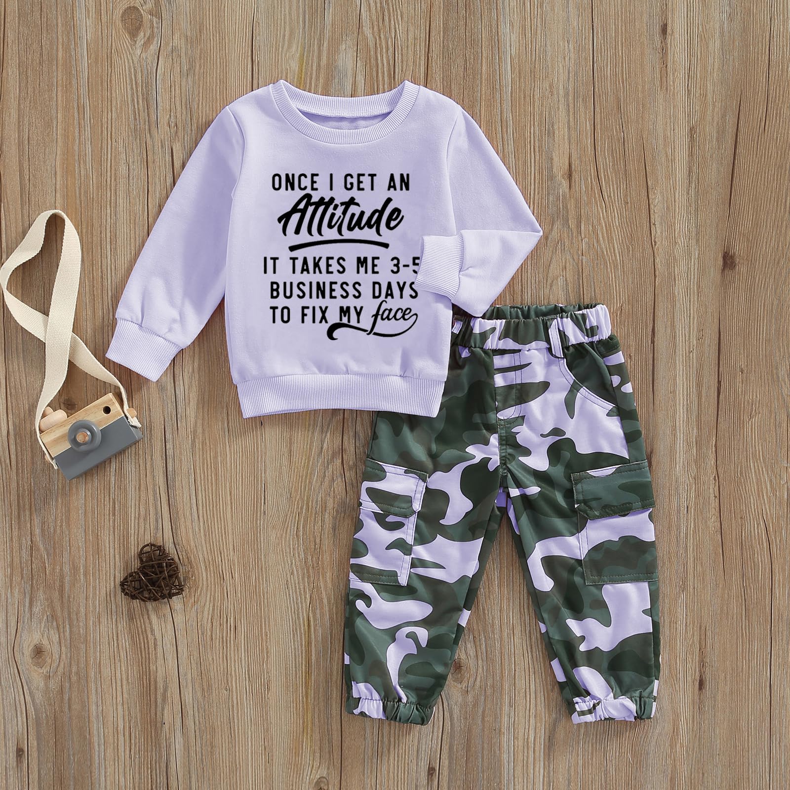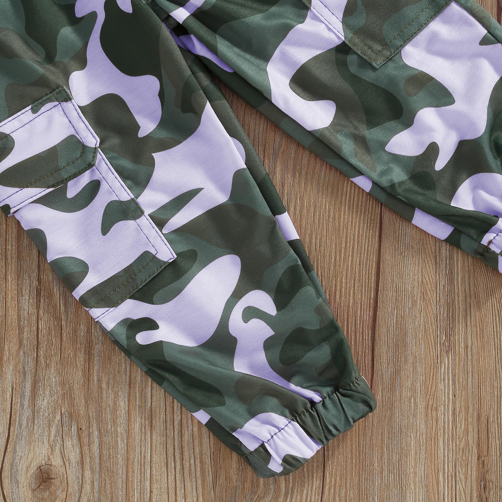 ♥Design: Baby girl fall outfits, pullover sweatshirt features letter print, long sleeves and a round neck. Trousers feature camouflage print and pockets.