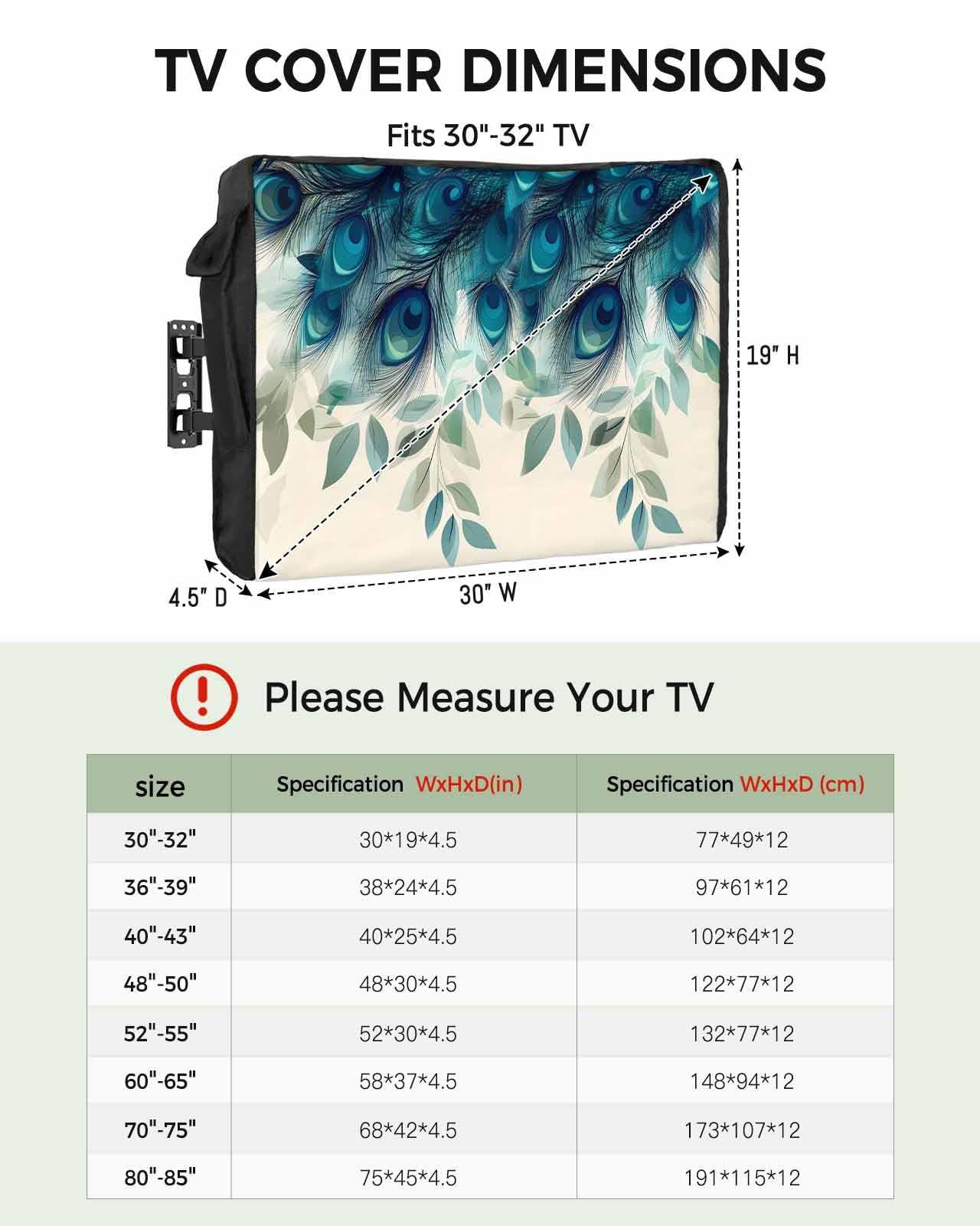 Protect your outdoor TV from adverse weather conditions such as wind, rain, snow, dust, etc. Provide 360 degree protection to extend the lifespan of outdoor televisions. Suitable for most general purpose TV wall mounting brackets, dual wall, single wall, and inclined TV brackets. The remote control pocket is convenient for storing the remote control. Machine washable, non bleachable, low temperature ironing! Protection from Sunlight UV radiation can be a major destructive factor for any equipment you keep outside. Material Oxford Cloth Size 30"x19"x4.5" for 30-32in TV 38"x24"x4.5" for 36-39in TV 40"x25"x4.5" for 40-43in TV 48"x30"x4.5" for 48-50in TV 52"x30"x4.5" for 52-55in TV 58"x37"x4.5" for 60-65in TV 68"x42"x4.5" for 70-75in TV 75"x45"x4.5" for 80-85in TV Note: Due to the display differences of computer monitors, there may be slight color changes between the actual product and the screen. Please measure the size when purchasing.
