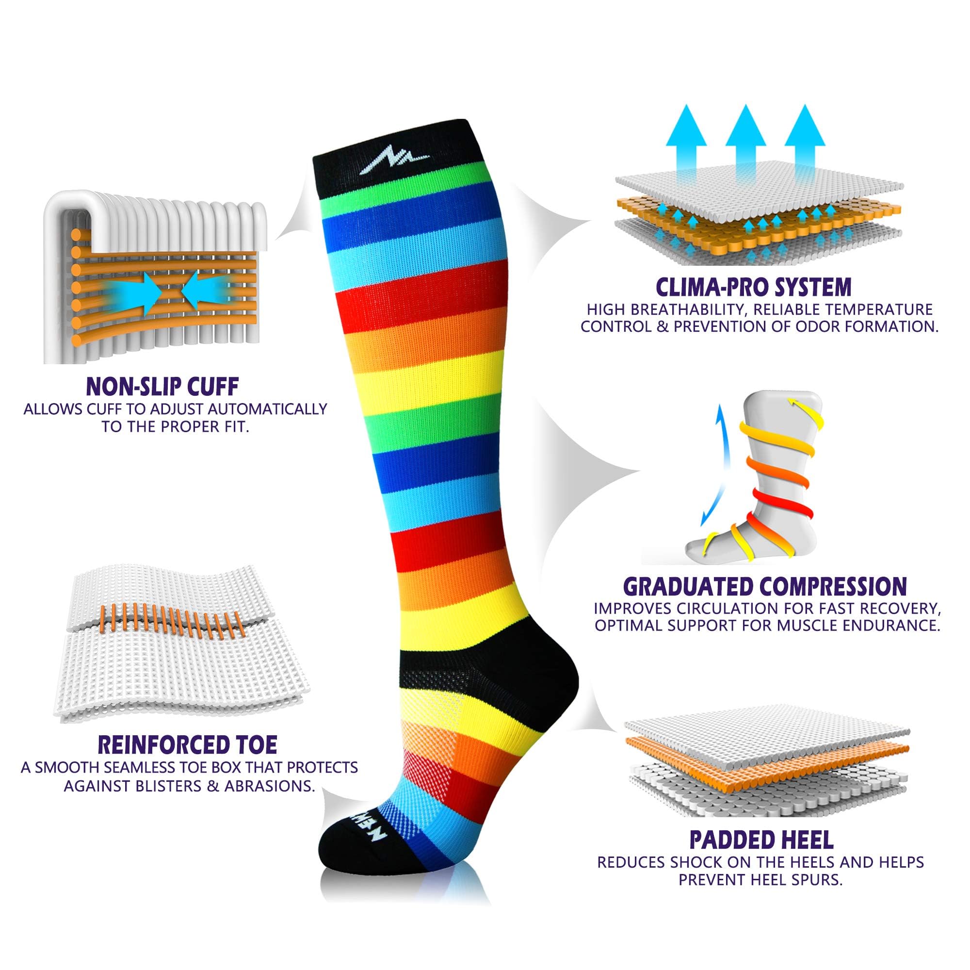 Our NEWZILL premium compression socks are designed to be worn comfortably all day long for all day compression. Our unique graduated garments are designed to deliver the most optimal degree of compression to support vital muscle groups. This technology is aimed to improve the flow of oxygen throughout the legs, helping you improve your endurance and stay active for longer periods of time. With a perfect size for everyone, and available in the latest Trending Fashion Colors you're sure to find the fit and style you need to perform and look your best. Available in 8 stylish colors for men & women!