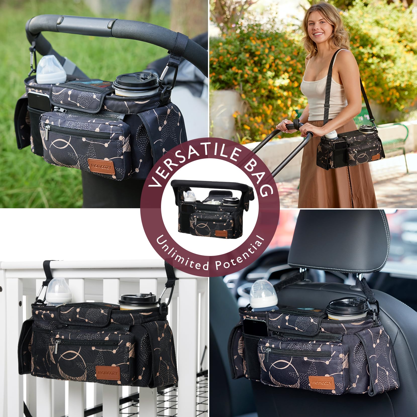 Momcozy Universal Stroller Organizer with Insulated Cup Holder Detachable Phone Bag & Shoulder Strap, Fits for Stroller like Uppababy, Baby Jogger, Britax, BOB, Umbrella and Pet Stroller