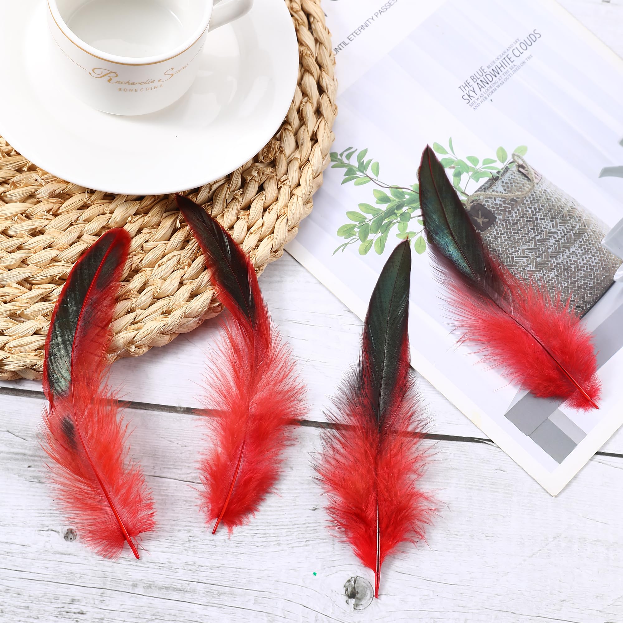Sufficient Quantity: 200 pcs red rooster tail feathers in package, plenty of fluffy, natural looking Crafts feathers for more crafting projects!