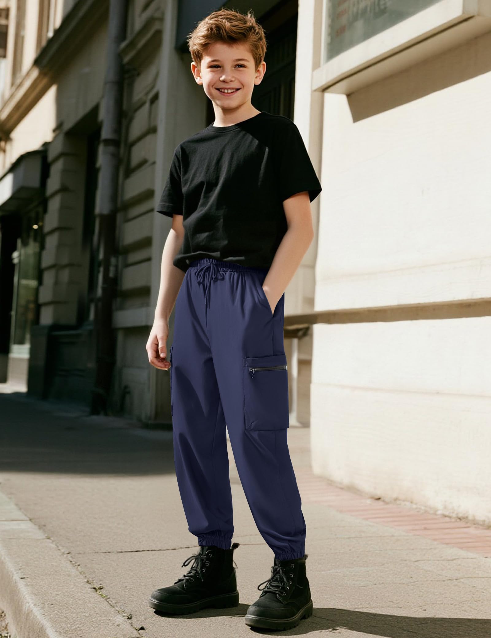 Multi Pockets Design -- The boys joggers have stylish and functional pocket design. Completing with two side pockets, two cargo pockets, two zipper pockets outside the cargo pockets. Offering convenient storage for small items that boys need to carry.