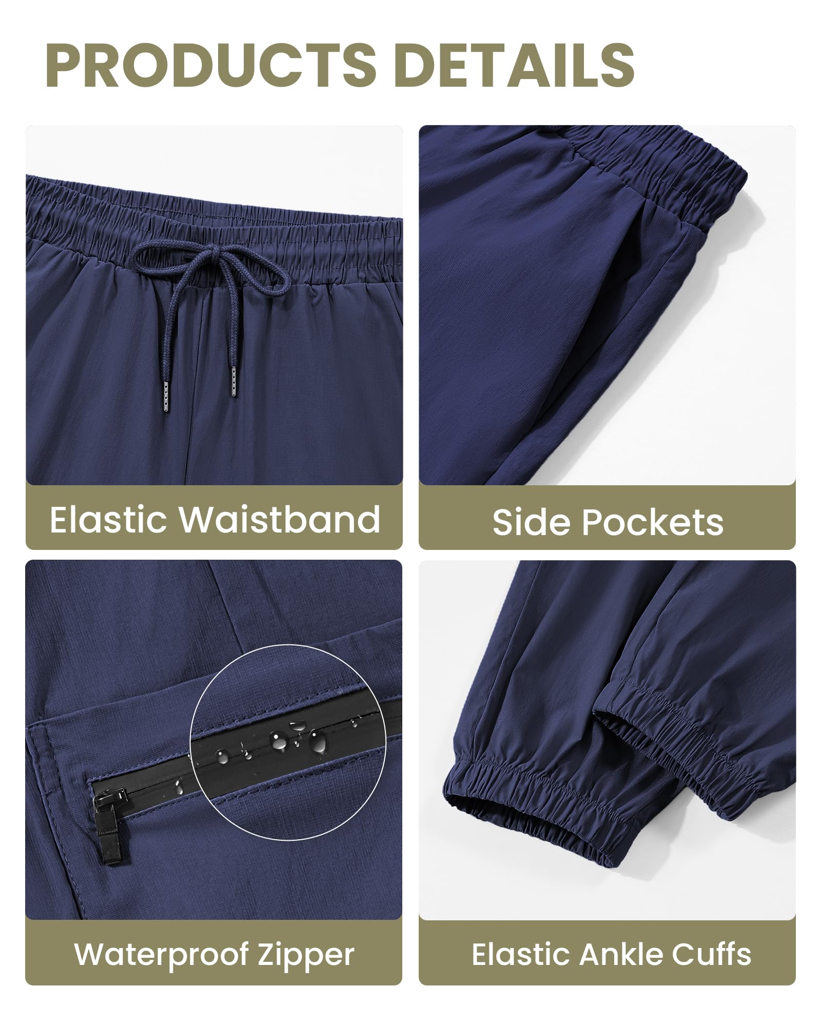 Boys Quick Dry Pants -- The athletic cargo pants are crafted with slight water resistant fabric that repels stains and light liquids and dry quickly to keep the body dry and comfortable all day long. The boys rain pants combine style and functionality, making them suitable for kids on the go.