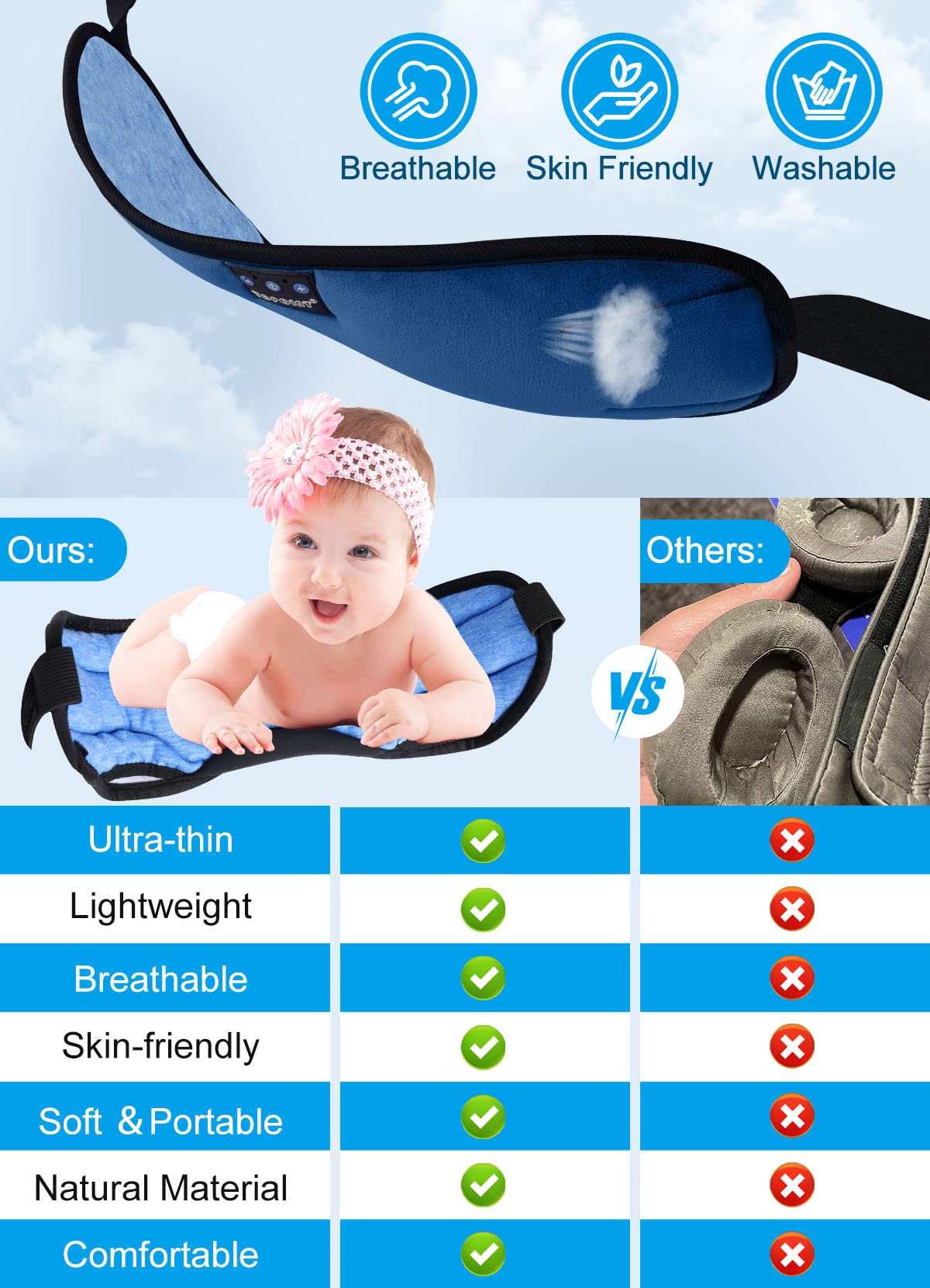 EFFECTIVELY LIGHT BLOCK OUT - This bluetooth sleep mask adopt bending cartilage design, adjustable and durable. Bluetooth eye mask for sleeping thoroughly blocking lights coming from the nose area, get sound sleep or nap everywhere! Extra cushion makes sleep mask headphones and nose touch better, which completely block light. Sleep mask bluetooth best for frequent flyers to sleep on long flights or sensitive sleepers (insomnia) who dislike glaring lights in any occasions.