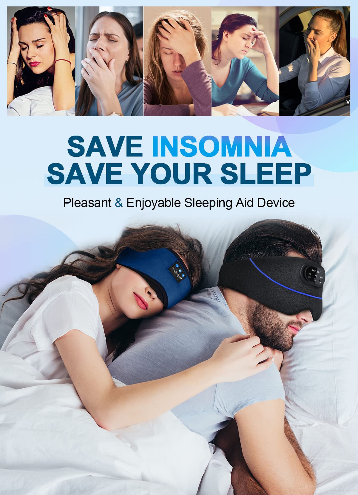 SAVE INSOMNIA SAVE YOUR SLEEP - Sleep headphones for side sleepers block out snoring, get his snooze on. Aid Sleep device is greatly helpful for people who often suffer from insomnia, lack of sleep, anxiety, high stress, or are prone to being woken up by noise. Beyond that, sleep mask with bluetooth headphones can effectively block out partners' snoring, ensure you a sound sleep. sleeping mask is a thoughtful gift for women/mom/girls/wife/mother.