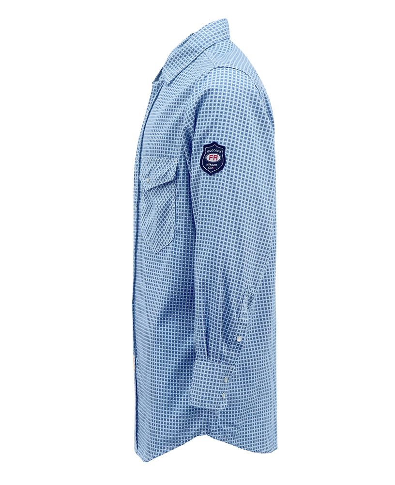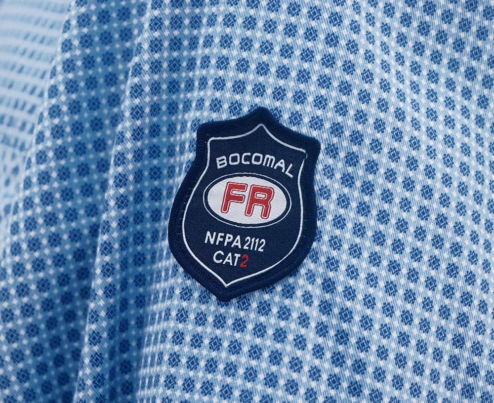 FR MATRIALS LIGHT WEIGHT:6.5OZ Cotton Printed Plaid,They feature FR buttons and are stitched with FR sewing threads for added safety.Eyecatch FR Tag on pocket.Additionally,the inside tag provides more information about UL certification. As a bonus, we have included a small sample inside the package for customers to try out the FR properties firsthand.