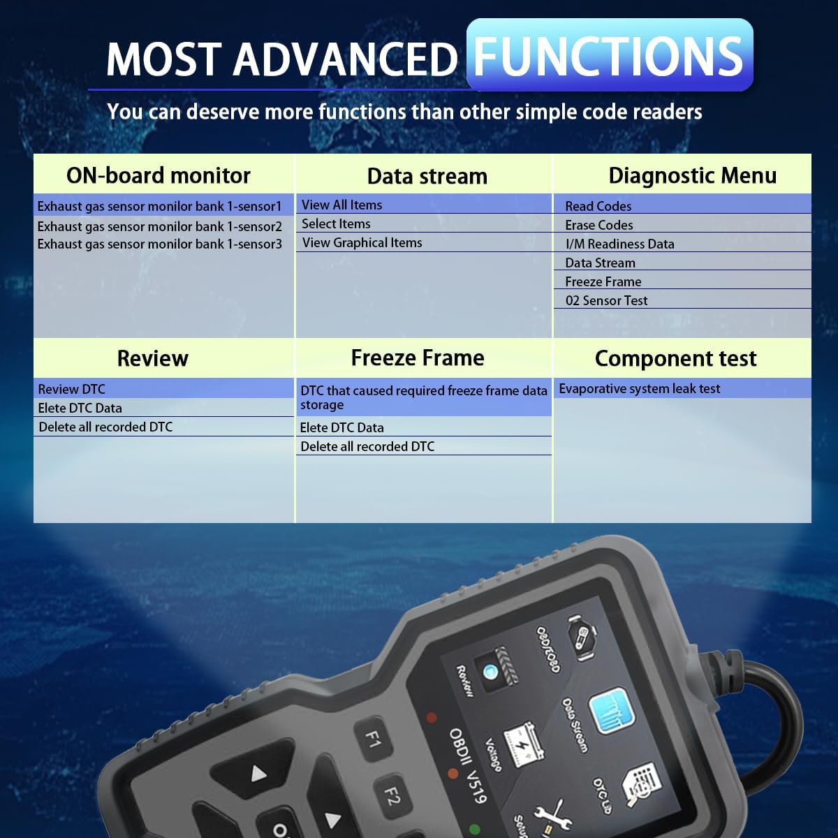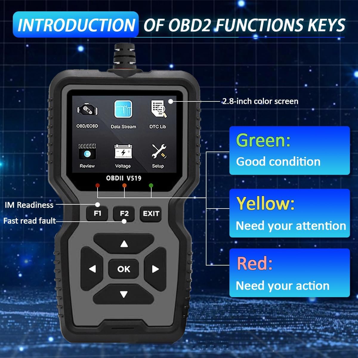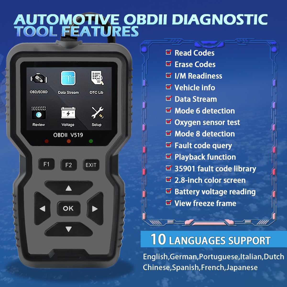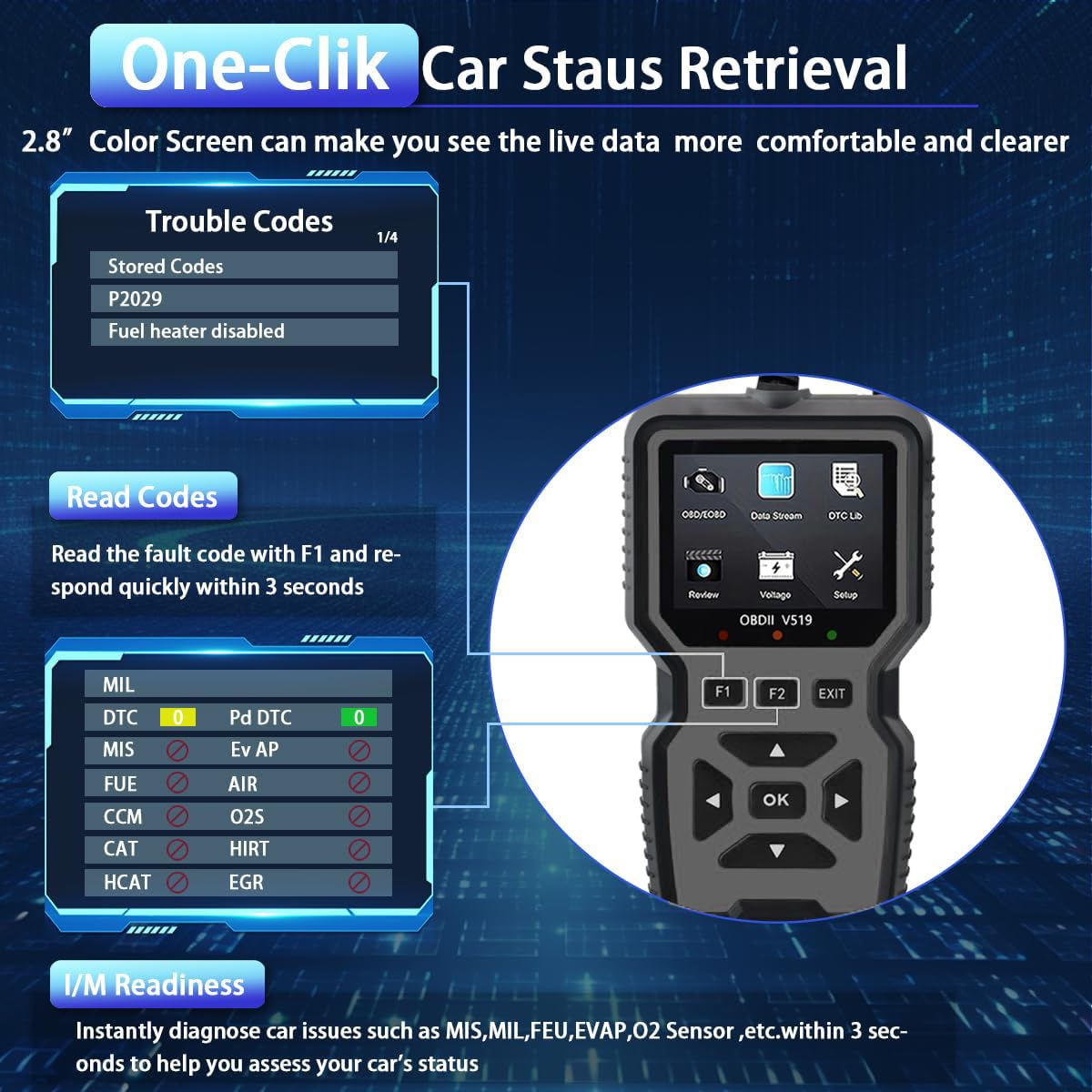 【Professional Diagnostic Power】Unlock comprehensive vehicle health insights with the V519 OBD2 Scanner. This advanced tool reads and clears engine fault codes (P0, P1, P2, P3 series) for cars, trucks, and SUVs, while displaying real-time battery voltage, RPM, and engine load. Perfect for DIYers and professionals, it eliminates guesswork by pinpointing issues like misfires, sensor failures, or emission system problems.