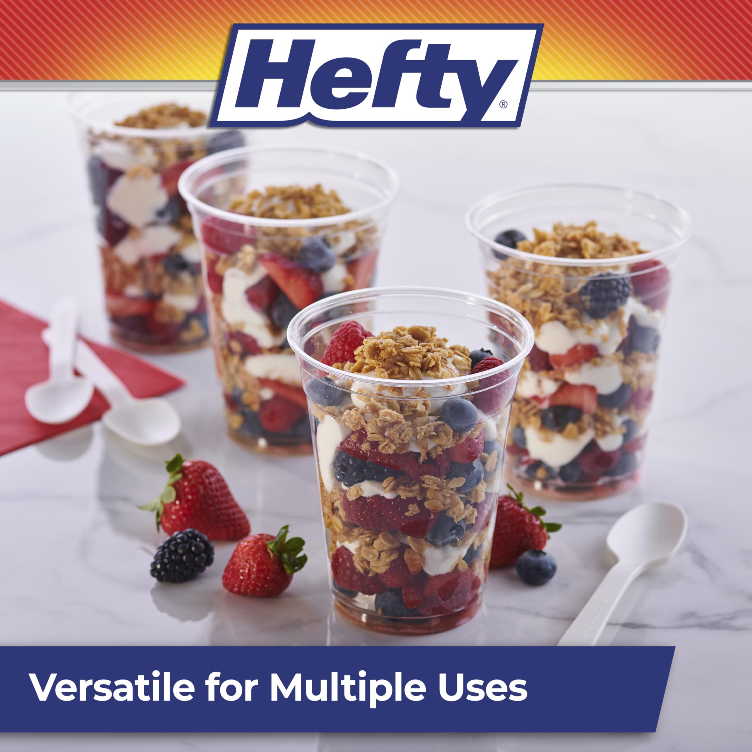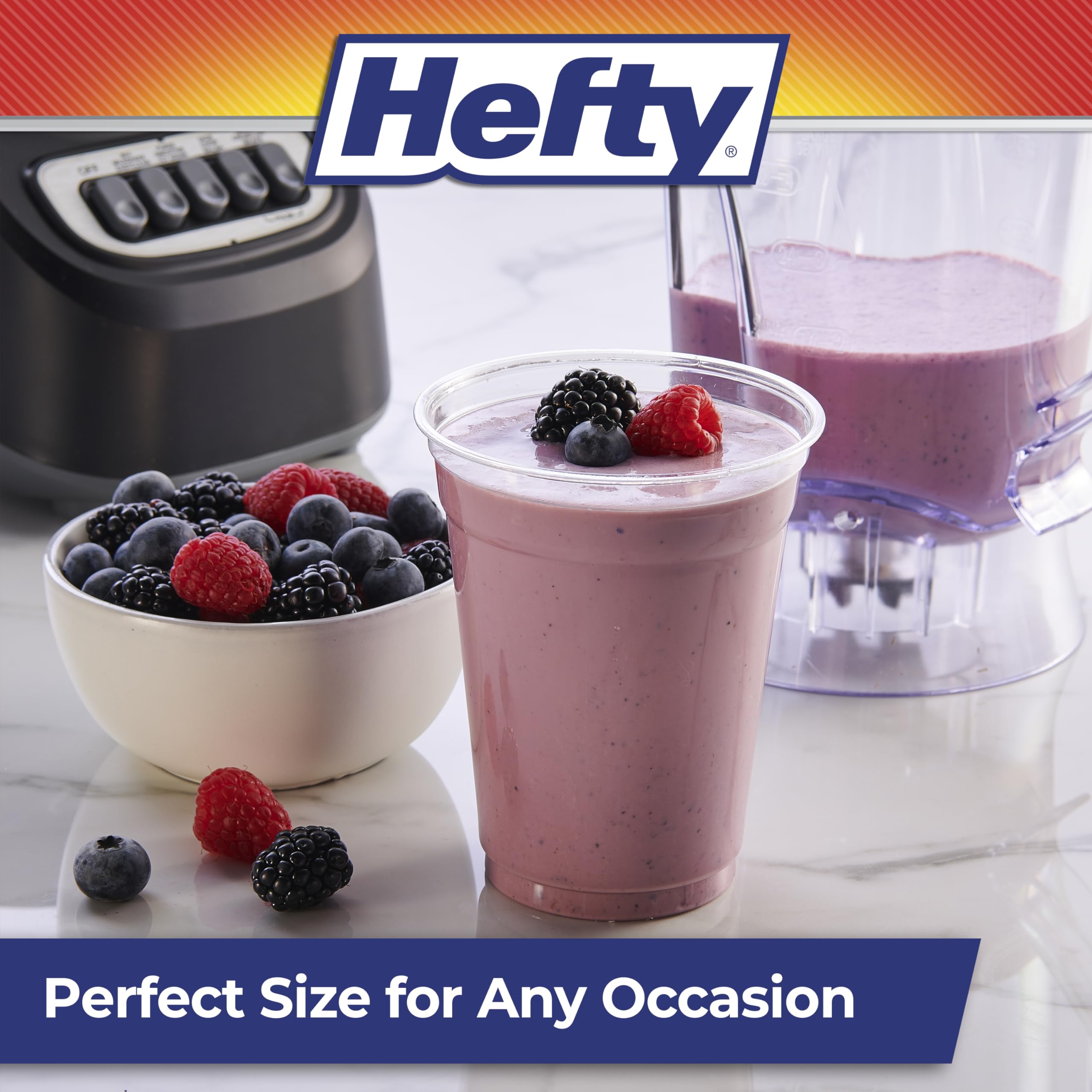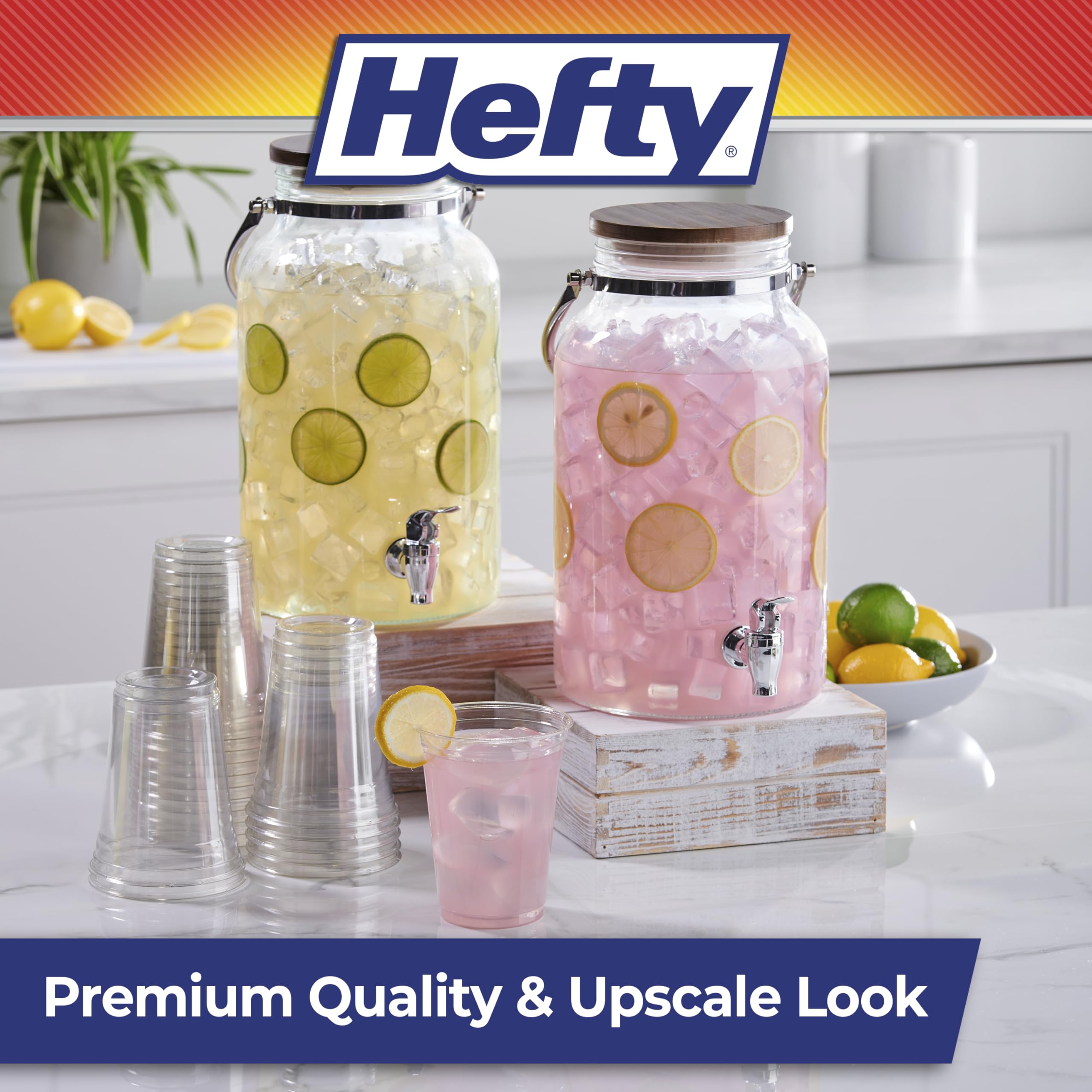 Stock up on Hefty Party Perfect Clear Plastic Cups before your next party for a convenient, attractive and practical way to serve beverages to your guests. Made for optimal clarity, these durable, clear disposable plastic cups are premium quality, shatter-resistant and offer an upscale and elegant look for entertaining without the mess. Great for any occasion—large or small, casual or fancy—these clear party cups blend seamlessly with your colors, theme and decor. In addition to easily serving cold and room-temperature beverages of all sorts, these disposable cups can also be used for a polished presentation of snacks and desserts like parfaits. Made with toughness you can trust, these disposable, shatter-resistant cups let you enjoy your party without worrying about broken glassware or a pile of dishes in the sink. Don’t forget: all Hefty plastic cups come with a 100% satisfaction guarantee.