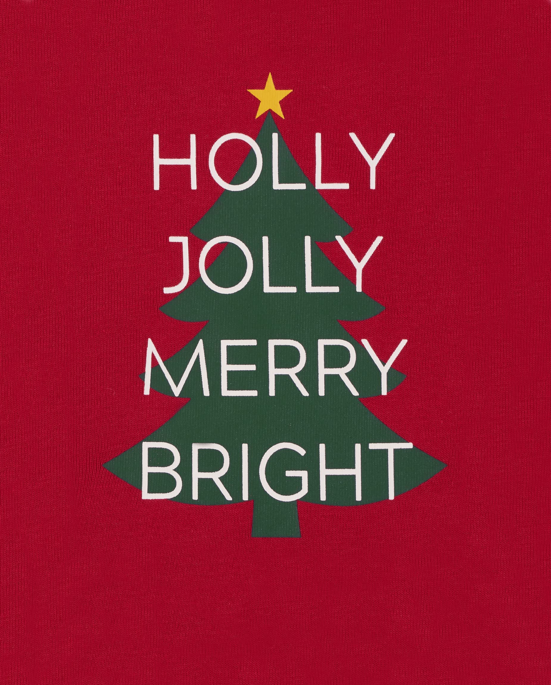PAJAMA TOP — Features long sleeves, rib-knit crew neck and sleeve cuffs and 'Holly Jolly Merry Bright' with Christmas tree graphic design at front