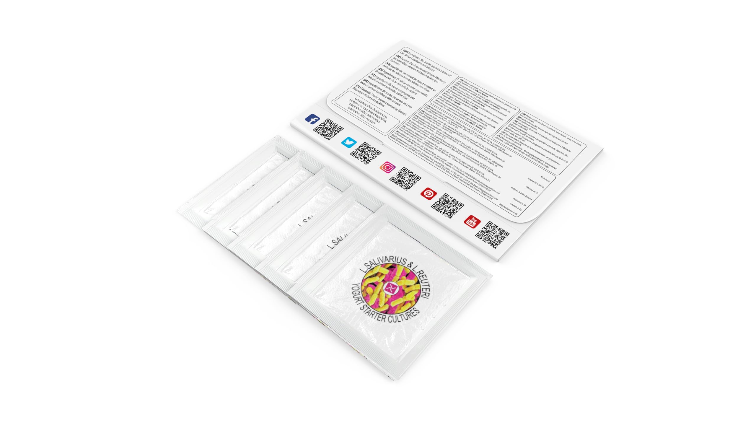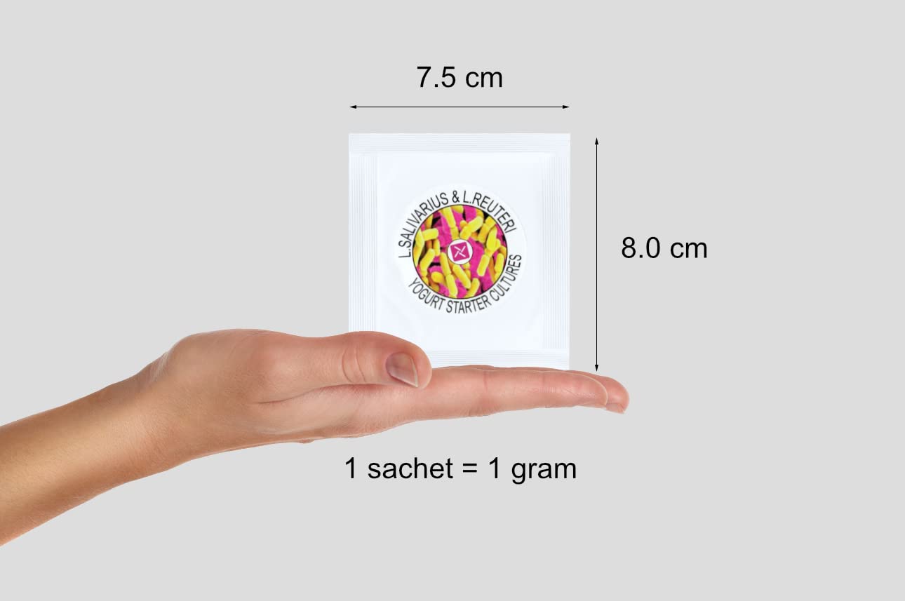 One sachet is enough to make 1 quart of plain yogurt and re-culture consequent generations