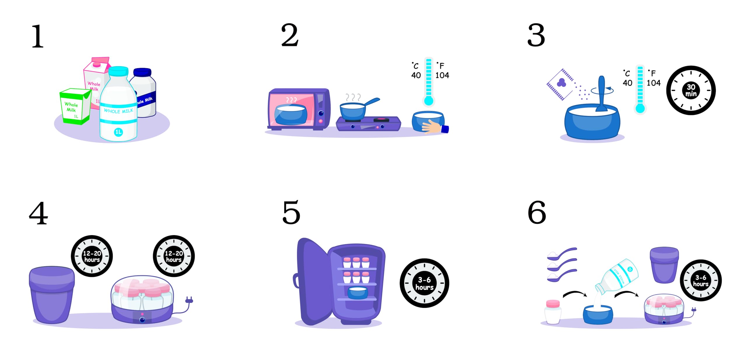 It can be made with all yoghurt-making devices and used with whole dairy, soy or cashew milk for best results when making yogurt-like products It is manufactured in a facility that processes milk and contains traces of lactose. The product is not intended for direct consumption. For best results use whole dairy milk, soy or cashew milk with no preservatives and additives. Do not store open sachet.