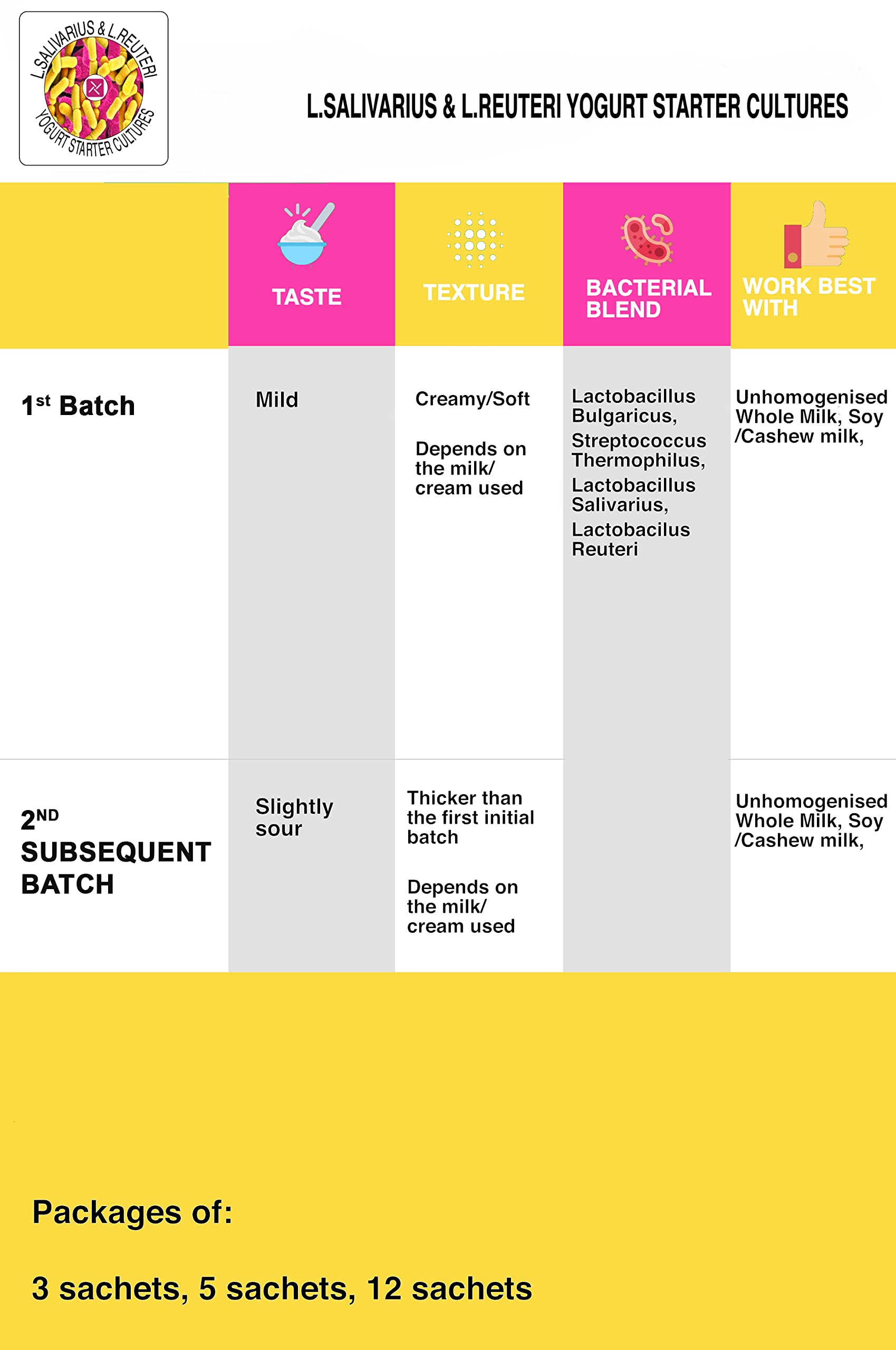 Contains ''Lactobacillus Bulgaricus'',''Streptococcus Thermophilus'', ''Lactobacillus Salivarius'' and ''Lactobacillus Reuteri''