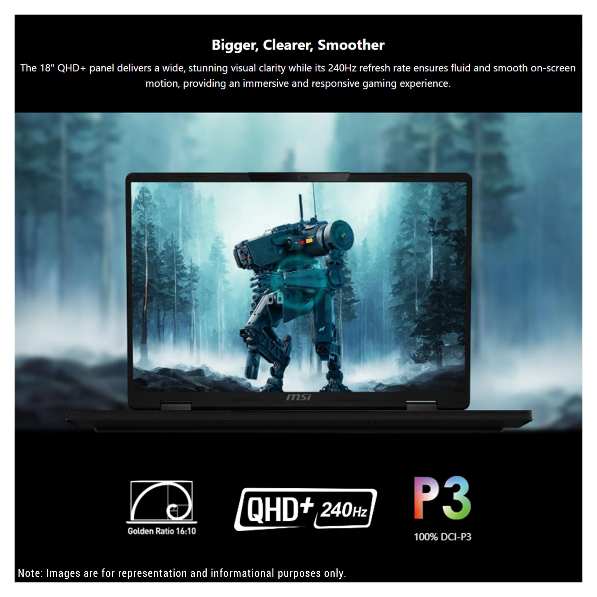 【Display】18" QHD+(2560x1600) 240Hz, 100% DCI-P3, IPS Panel 18" QHD+ (2560 x 1600) display with ultra-fast 240Hz refresh rate for exceptional clarity