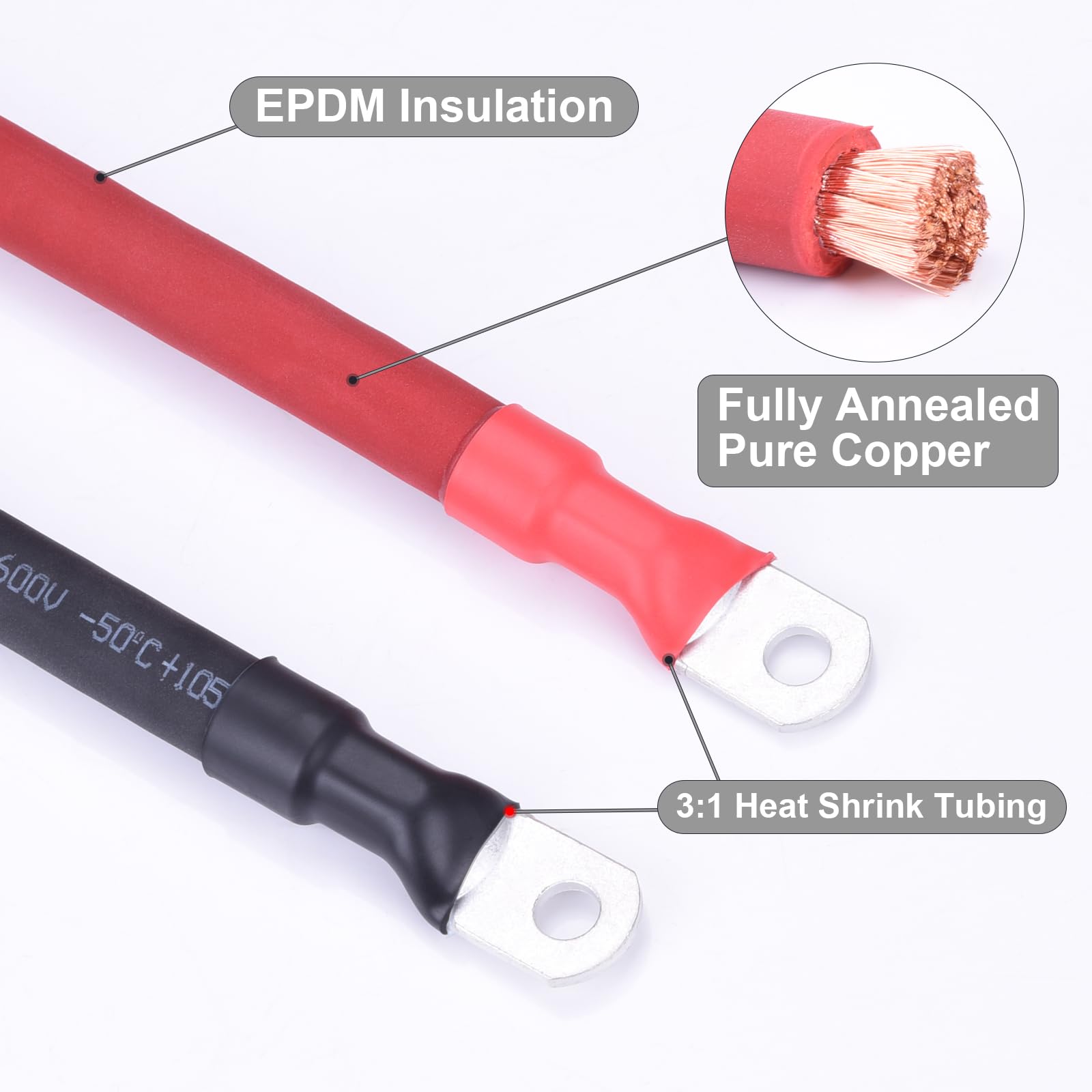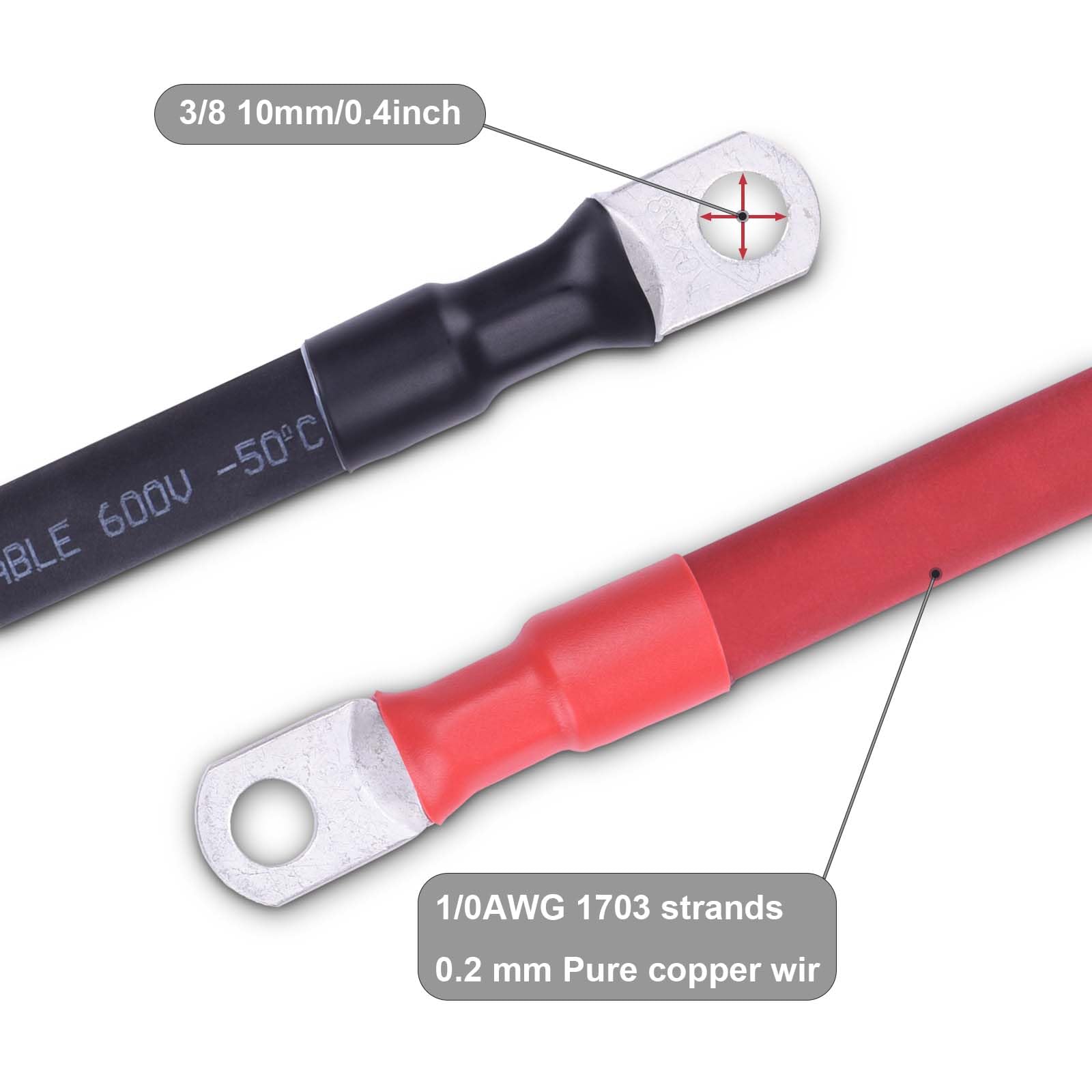 【Easy to Use】: Each cable have 2 pcs 3/8" (M10) round center hole terminals (already crimped) on both ends and 3:1 Dual Wall Adhesive Heat Shrink Tubing Tube, thick and sturdy than 2:1 shrink tube, fit for 3/8" (M10) stud