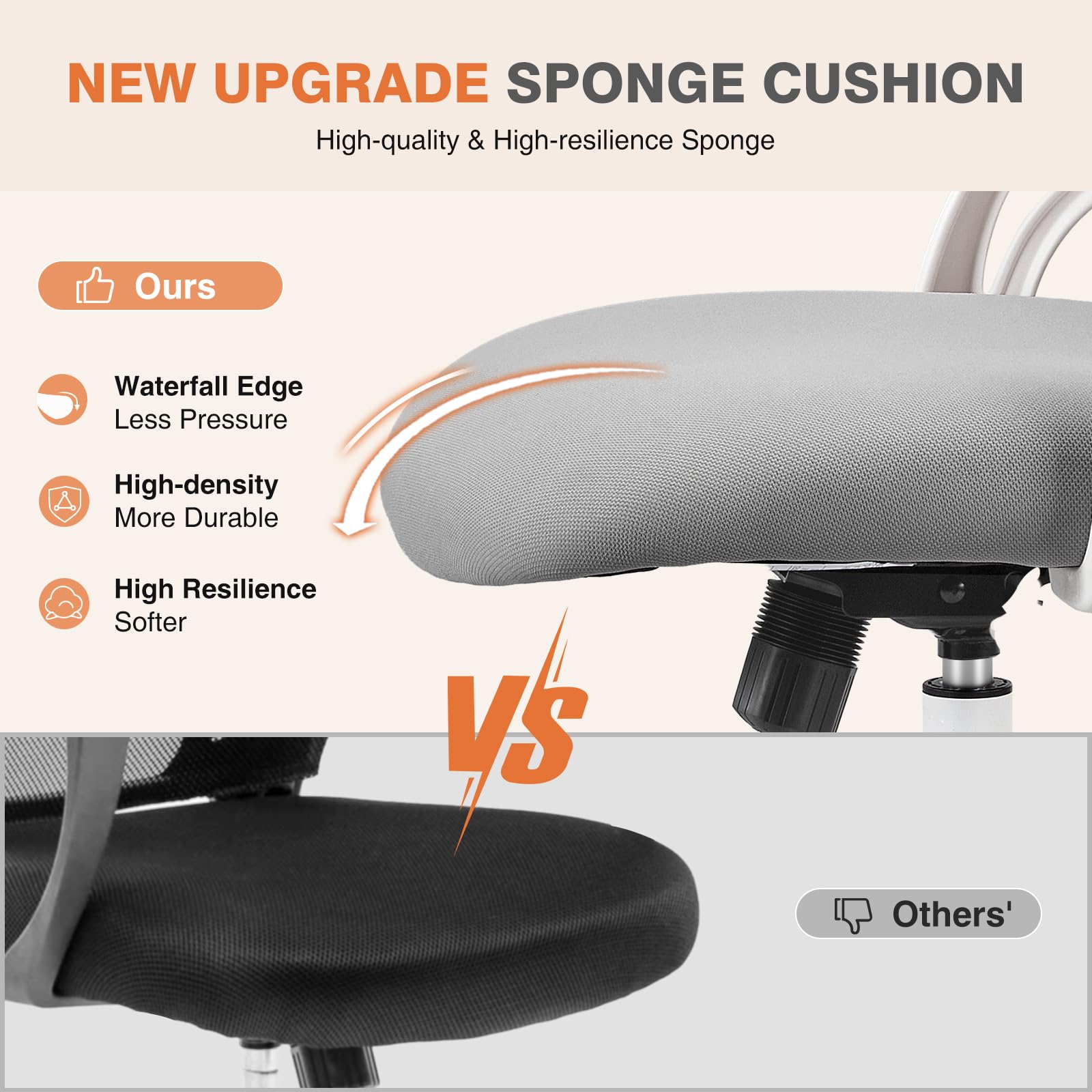 【All-Day Comfort】Indulge in a premium seating experience with our ergonomic office chair, boasting an all-elastic mesh back and high-density sponge seat for unparalleled comfort throughout the day. The innovative mesh design is not only skin-friendly and breathable, but also ensures optimal airflow to keep you cool and comfortable during extended work sessions. Elevate your workspace with a chair that prioritizes your well-being and productivity, providing the perfect blend of comfort and style.