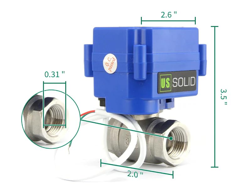 NPT THREADING – ¼" stainless steel threading, manufactured and measured according to National Pipe Thread (NPT) standards. This standard-port electrical ball valve features a bore slightly less than ¼”, minimizing pressure loss—ideal for home automation projects.