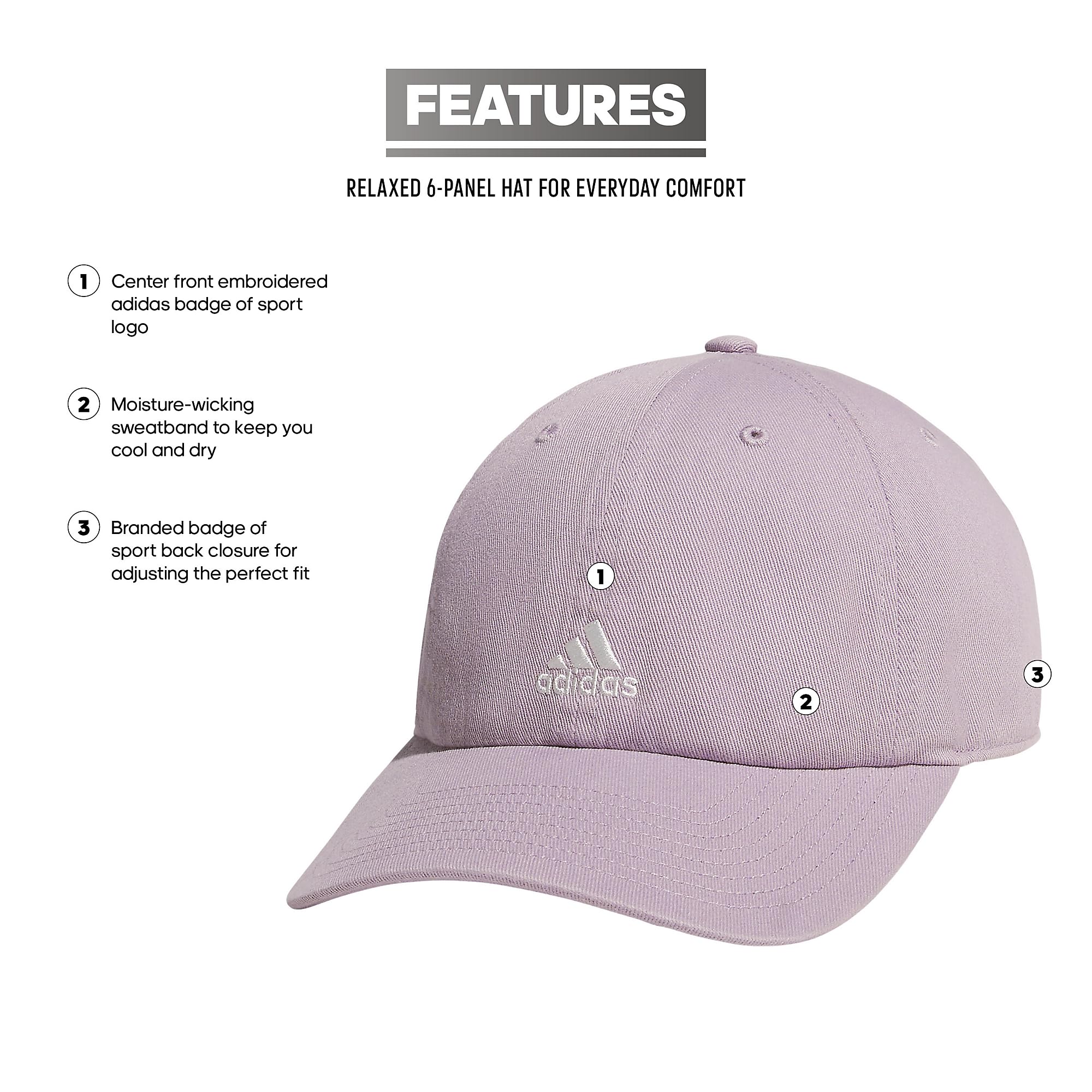 Description Put the finishing touch on your look in this sporty yet versatile hat for women. Made with sweat-wicking, quick-drying material and adidas Climacool, it keeps your head feeling cool and dry when you're on the go. It has a relaxed six-panel crown and an adjustable strap for locking in the perfect fit.