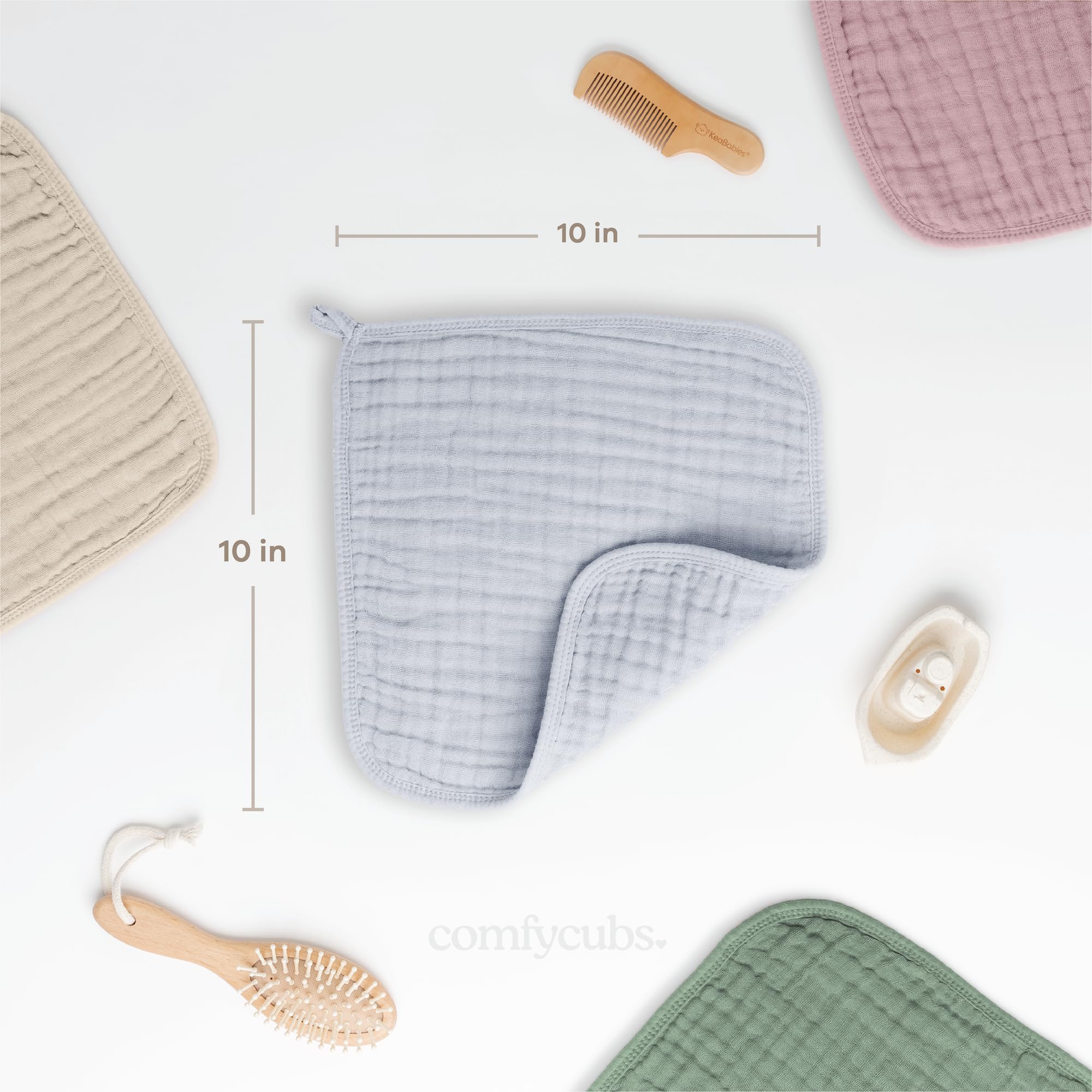 Soft & Gentle Muslin Washcloths: Crafted from 100% premium muslin cotton, Comfy Cubs baby washcloth is specially designed for delicate, sensitive baby skin. Great for keeping your newborn clean and comfortable during bath time.