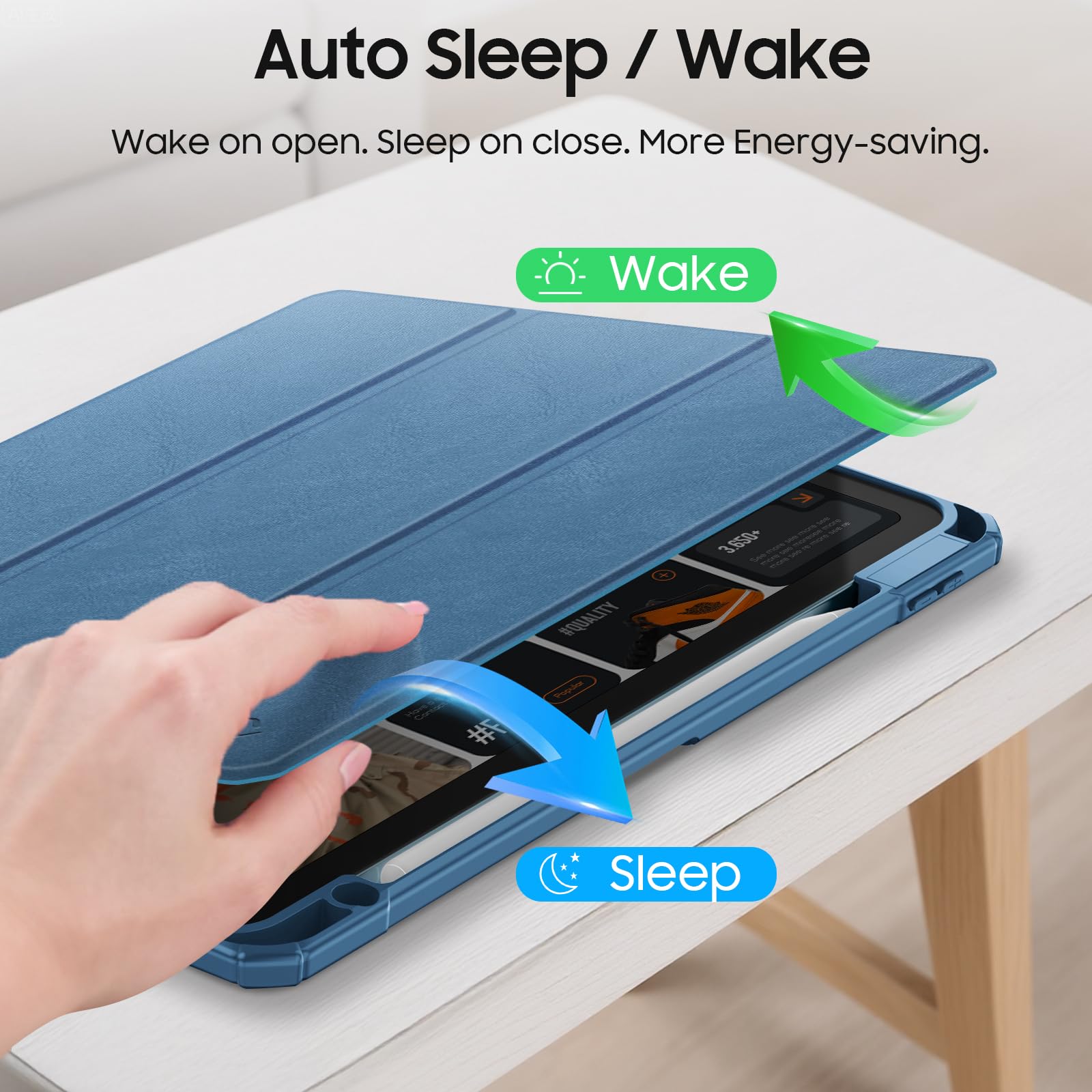 Seamlessly supports Apple Pencil Pro / Apple Pencil 2nd Gen magnetic and wireless charging when case is on. Tri-fold front cover has flip capability to transform the iPad case into a viewing stand and keyboard stand.