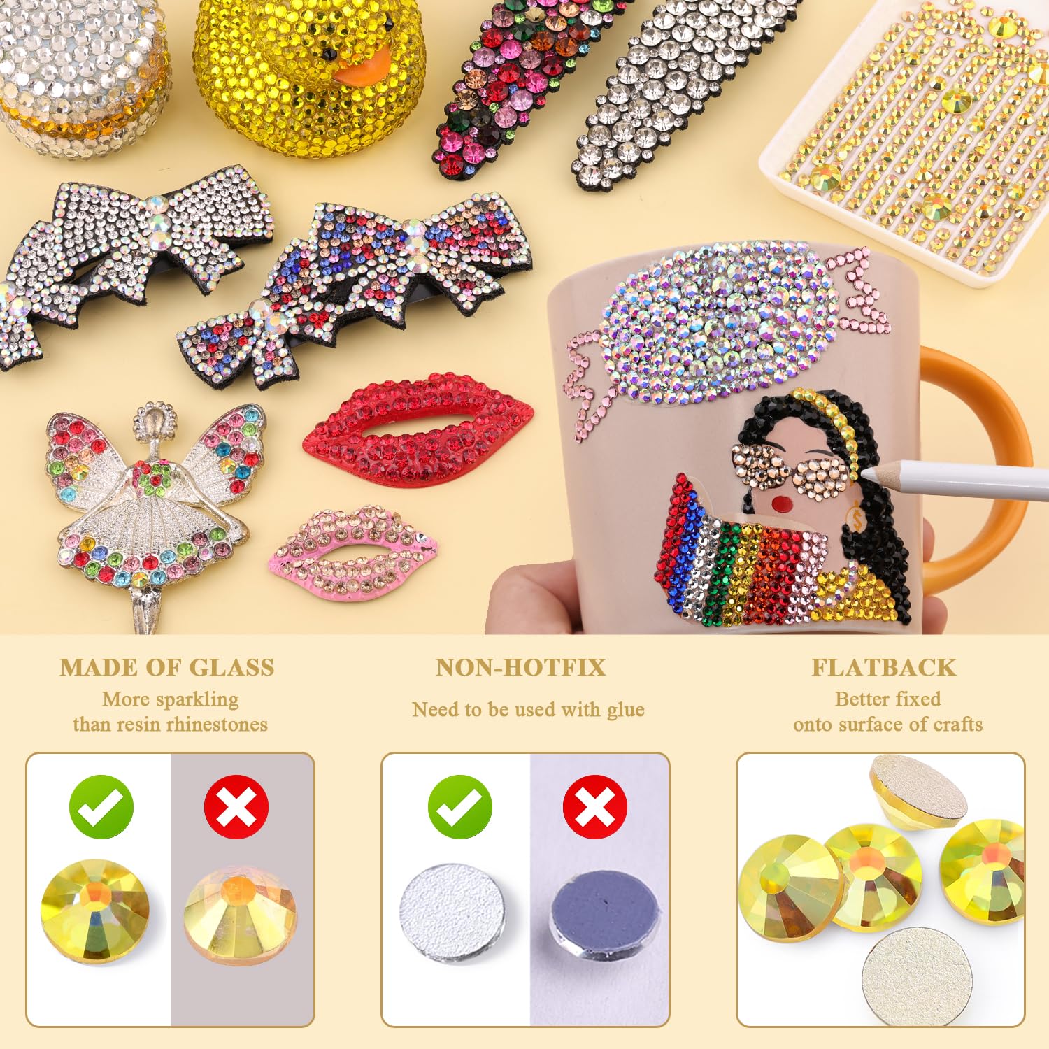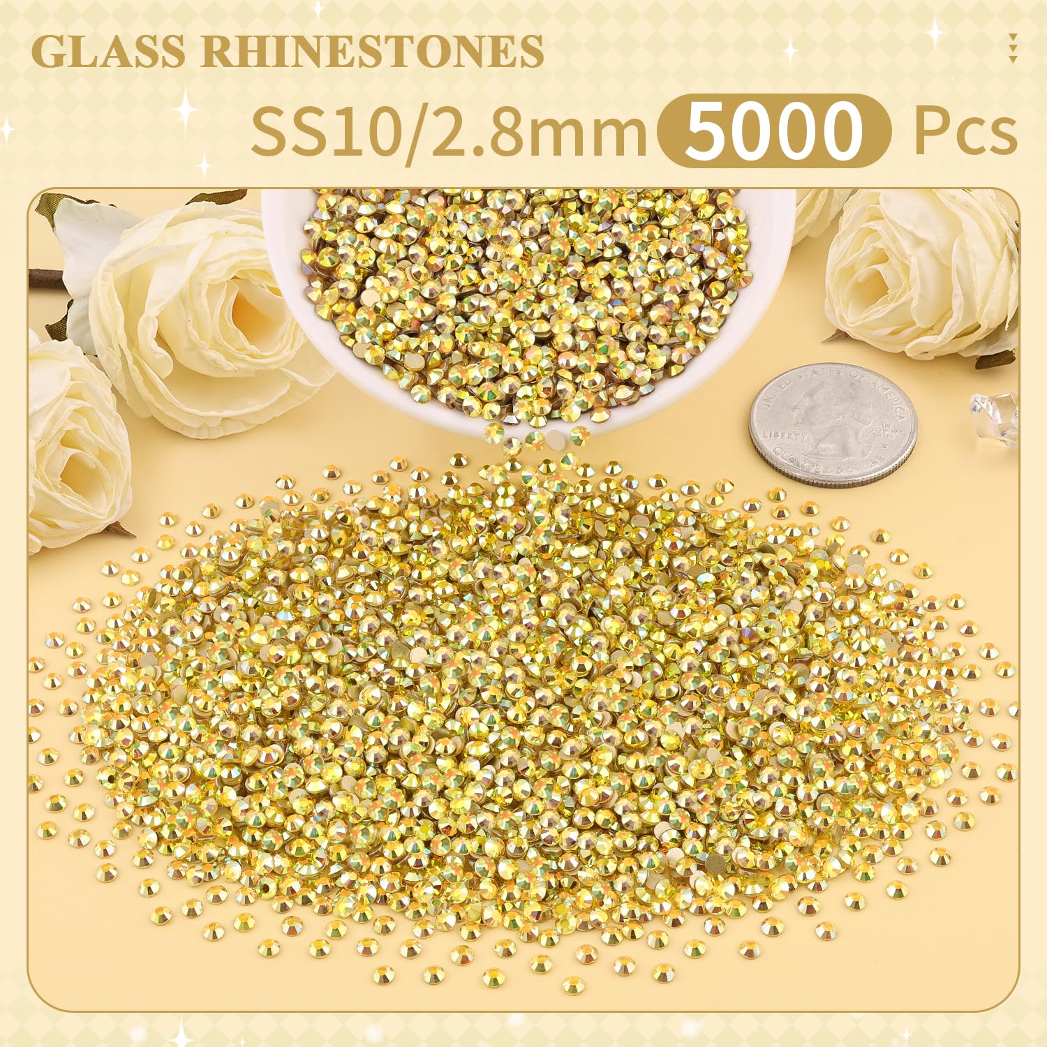 WHAT WILL YOU GET -- The package contains about 5000 pcs SS10 (0.11") blingbling glass rhinestones (Metal Sunlight). The large amount will support you to fulfill a number of your wonderful DIY decoration ideas. Additionally, 1 tweezers and 1 pickup pen are included to easily pick up glittering gems.