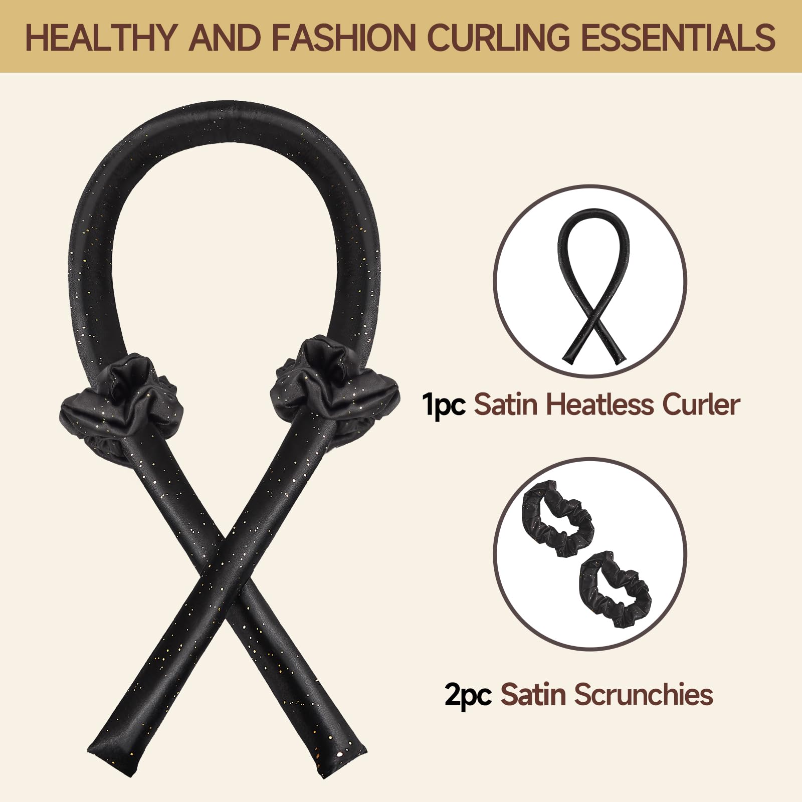 【No More Heat Damage】 Avoid heat damage with this perfect hair roller for heatless curls alternative to traditional hot rollers and other rough hair curlers. This set includes a curling rod and two satin sleep scrunchies, all covered in high-quality, silky satin fabric.
